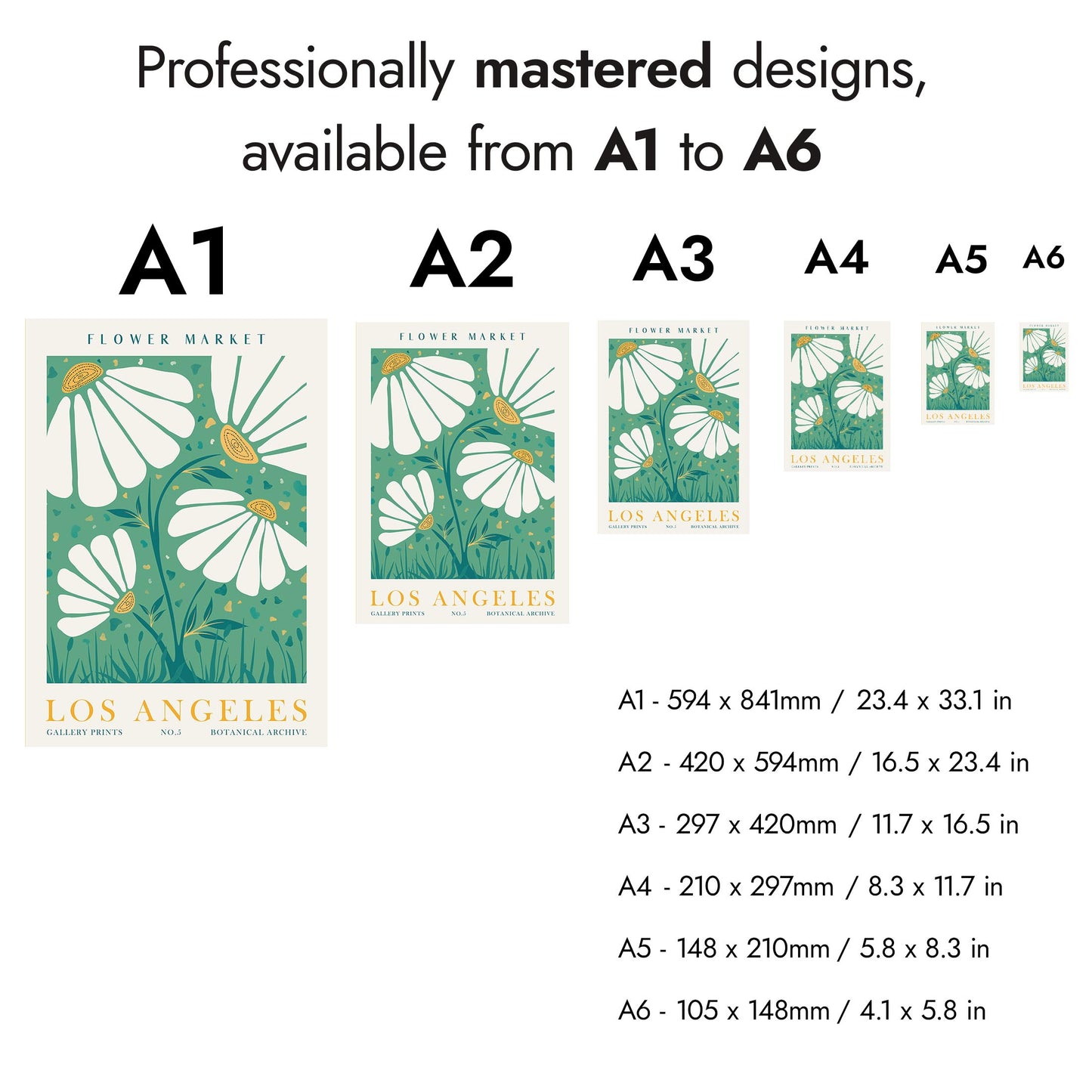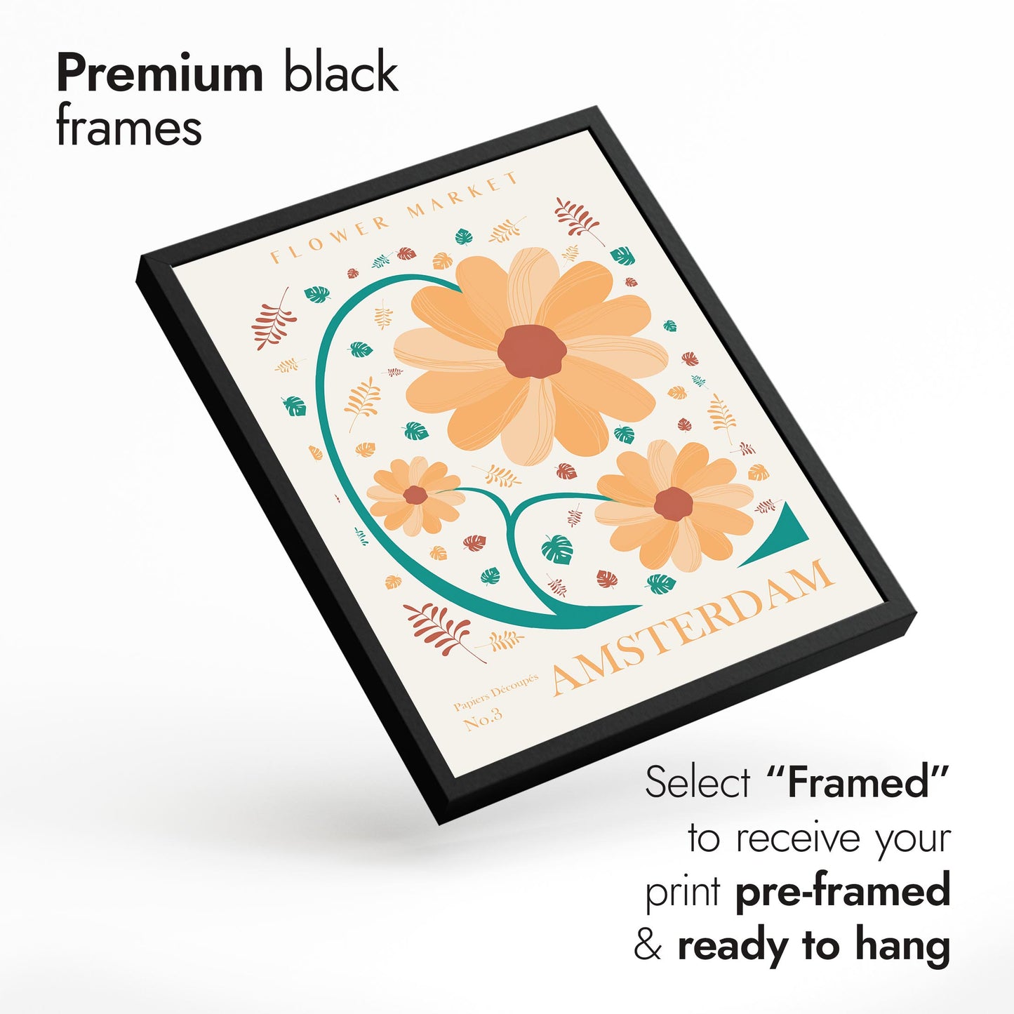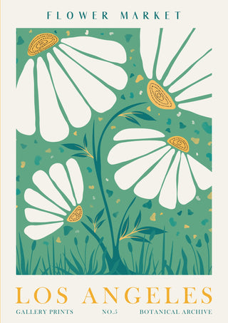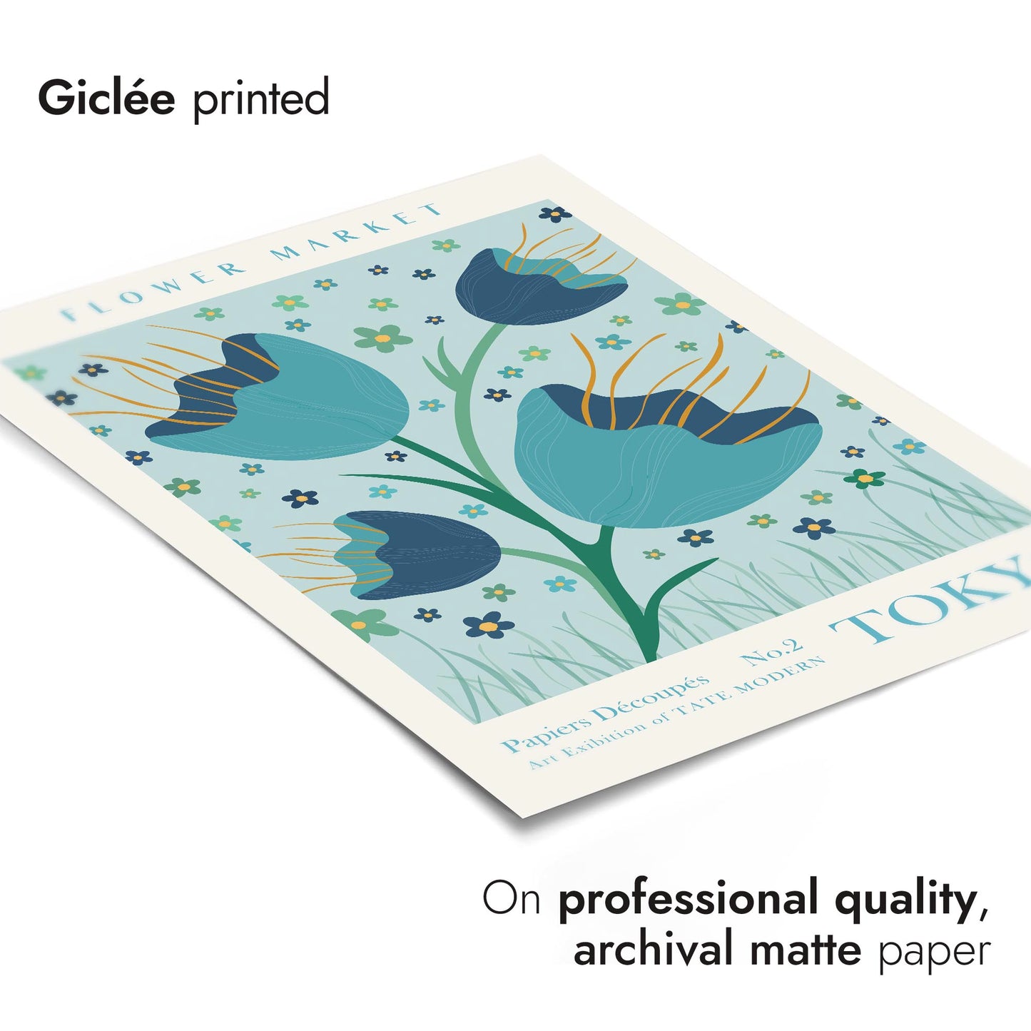 This vibrant and abstract "Flower Market" poster series visually celebrates the floral essence of Tokyo, Amsterdam, and Los Angeles. The artwork features graphic illustrations with bold floral designs in soothing shades of blue and orange. Ideal for nature enthusiasts and art lovers, these pieces bring a modern botanical touch to any space, encapsulating each city's unique floral market charm.
