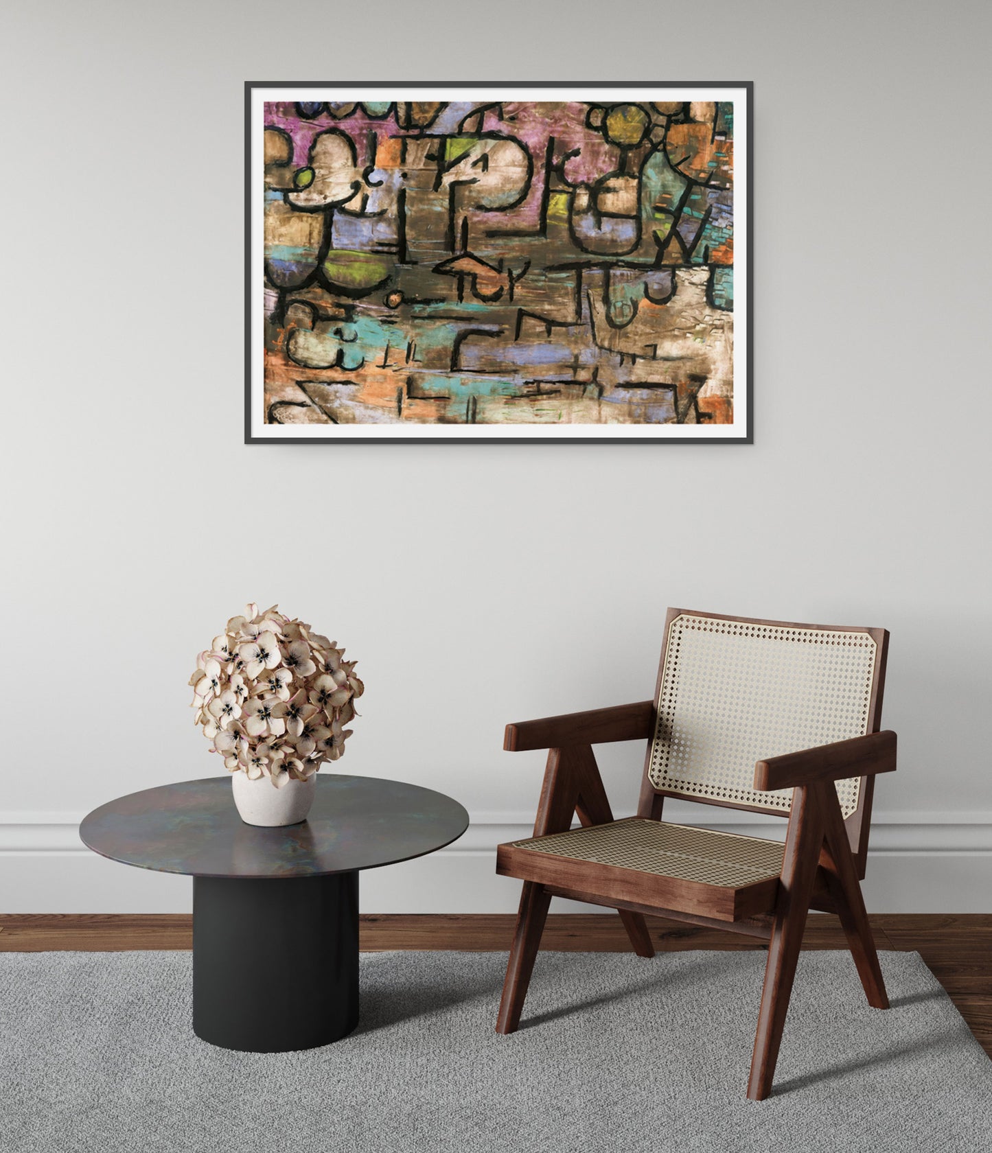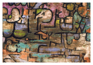 "After the Flood" by Paul Klee is an abstract poster featuring a harmonious blend of geometric shapes and earthy tones. This mid-century art piece captures the essence of modern Bauhaus style, with intricate lines and textures representing a surreal landscape. Rich in triangles and circles, Klee's painting evokes depth and complexity, making it a captivating addition to any modern art collection.