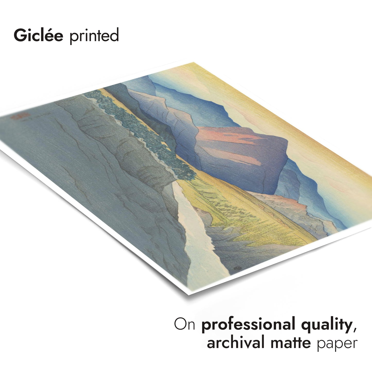 8 colour gicleé print process on FSC-certified 200gsm archival matte paper, with lifetime fade-resistance guaranteed.
