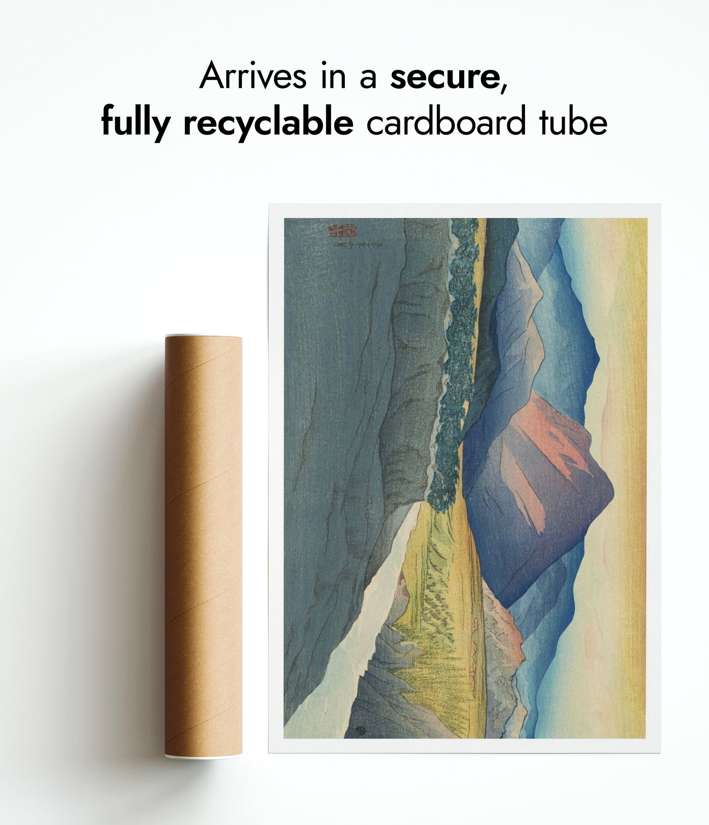 All orders are securely packed in recyclable, eco-friendly solutions. Frames are protected with sustainable bubble wrap alternatives inside thick boxes. Print only orders are shipped in heavy-duty cardboard tubes or protective hard-backed envelopes.