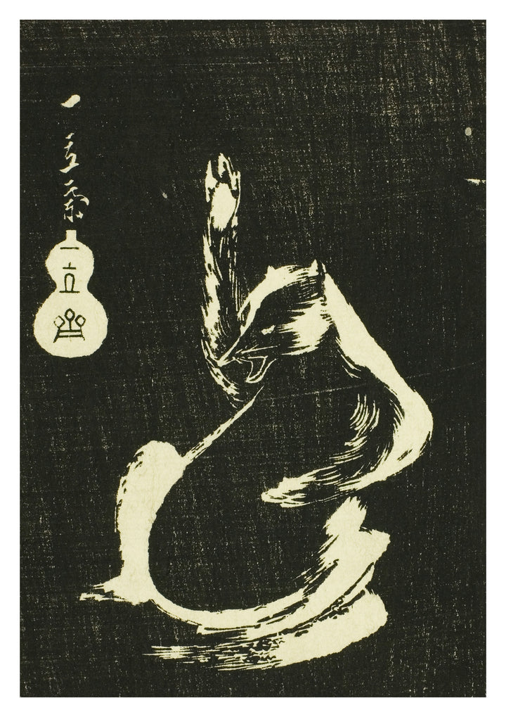 This Japanese traditional woodblock print titled "Badger" by Utagawa Hiroshige showcases a dynamic brushstroke depiction of a badger in black and cream tones. The minimalist design captures the essence of Ukiyo-E, emphasizing fluid motion and contemplative simplicity. This art poster makes a striking addition to any collection, embodying traditional Japanese illustration techniques.