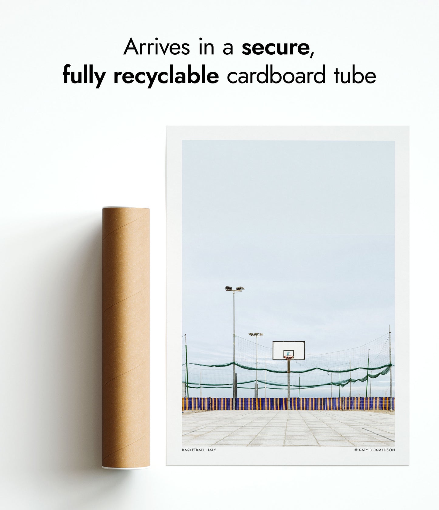 All orders are securely packed in recyclable, eco-friendly solutions. Frames are protected with sustainable bubble wrap alternatives inside thick boxes. Print only orders are shipped in heavy-duty cardboard tubes or protective hard-backed envelopes.