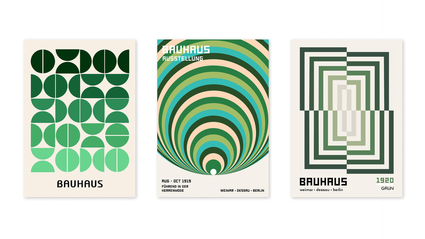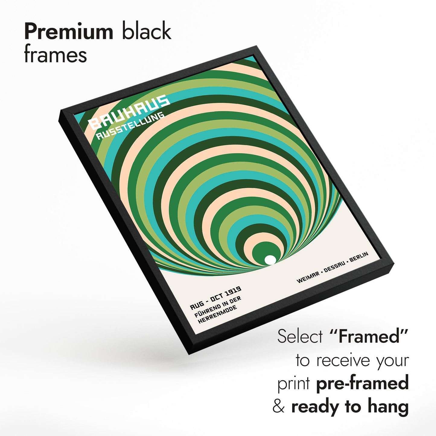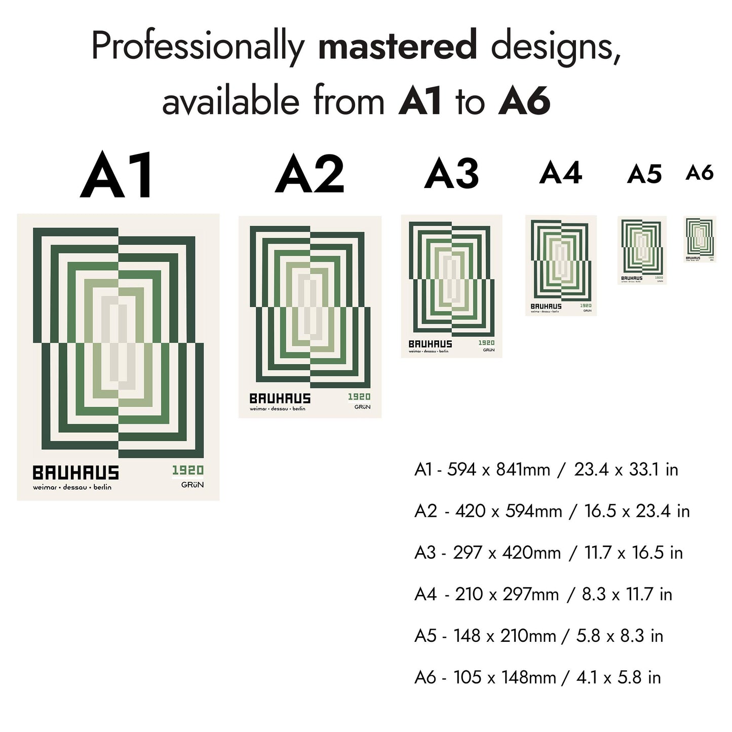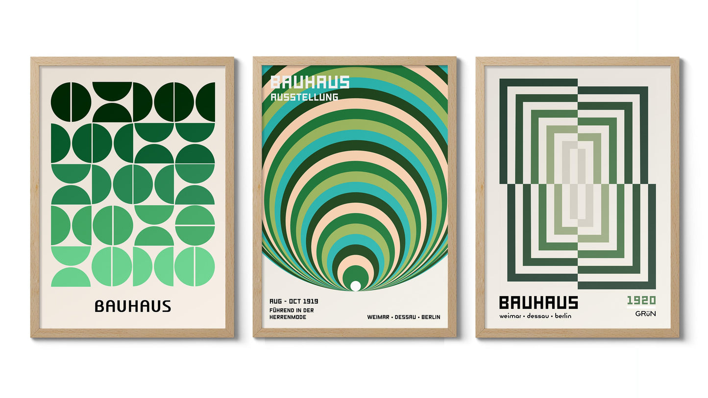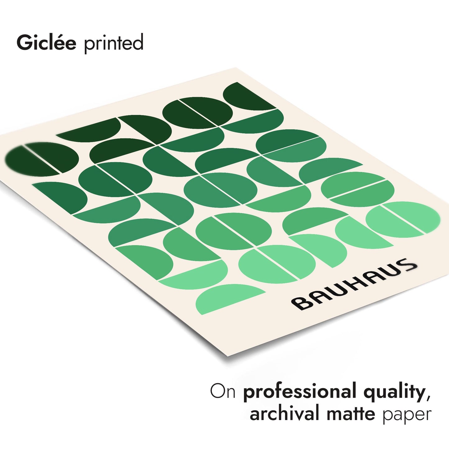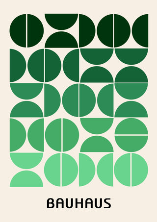 Elevate your space with this Bauhaus Green Geometric Gradients poster, celebrating mid-century design with abstract geometry. Featuring dynamic circles, semi-circles, and boxes in rich green hues, it embodies the essence of Bauhaus style. Perfect for lovers of abstract and geometric art, this poster adds a bold, artistic flair to any setting, seamlessly blending classic design with modern aesthetics.
