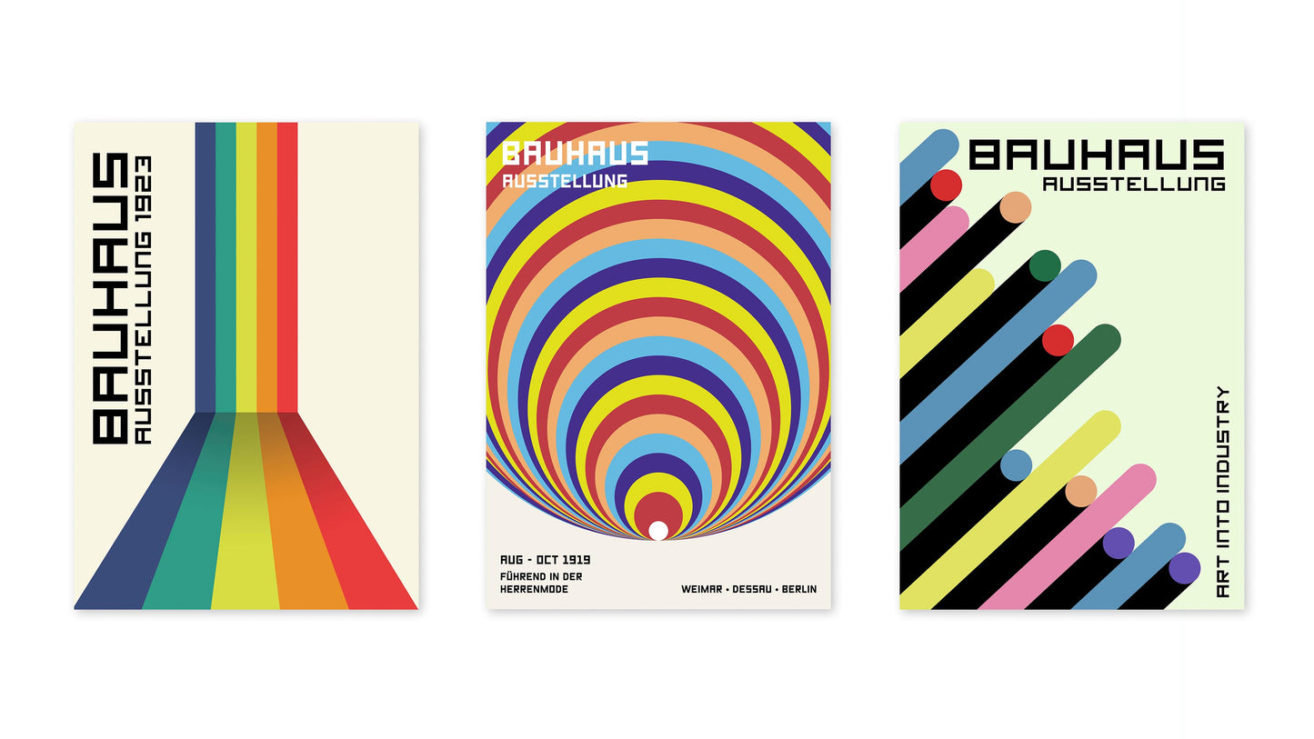 The "Bauhaus Line Breaks" set captures the essence of Bauhaus design with their abstract geometric forms and vibrant multicolored lines. These posters showcase dynamic compositions, featuring bold lines, circles, and arcs, representative of mid-century modern aesthetics. Perfect for lovers of abstract art and Bauhaus themes, these prints add a touch of bold, structured vibrancy to any space.