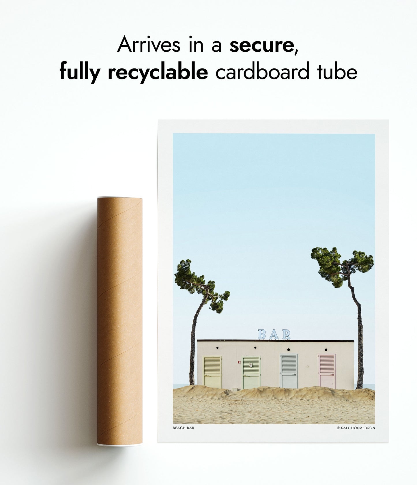 All orders are securely packed in recyclable, eco-friendly solutions. Frames are protected with sustainable bubble wrap alternatives inside thick boxes. Print only orders are shipped in heavy-duty cardboard tubes or protective hard-backed envelopes.
