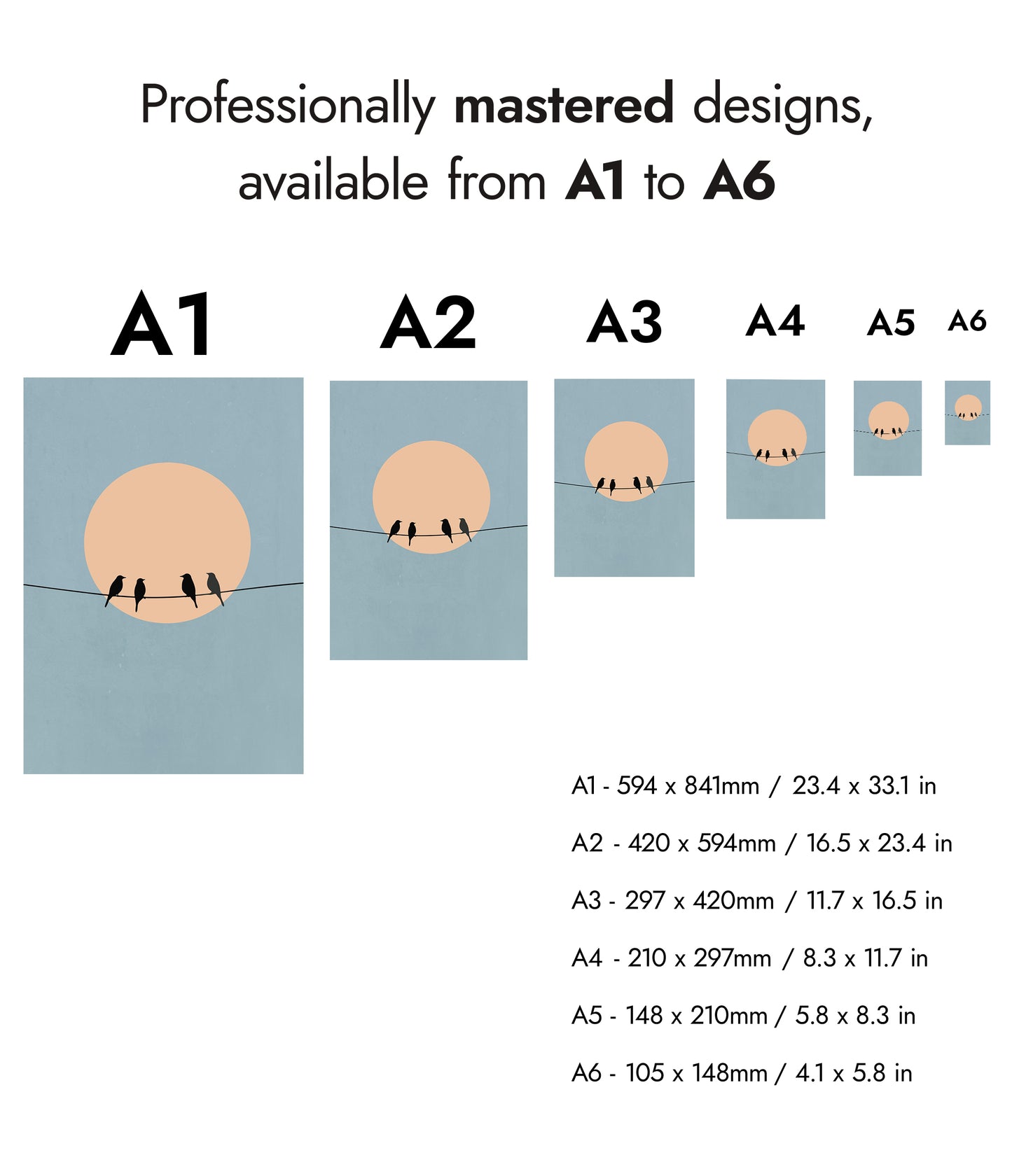 8 colour giclée print process on high-quality 230gsm archival matte paper. All our paper is FSC Certified and prints come with a lifetime fade-resistance guarantee.