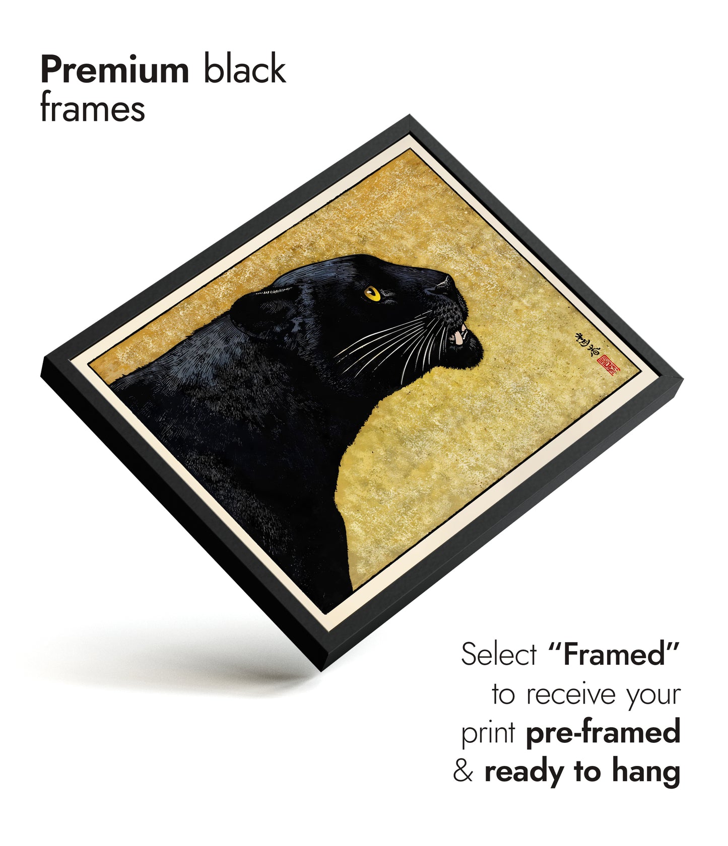 Solid wood frames available in black stained or natural finishes, with UV resistant acrylic glass. Framed orders arrive pre-installed with your choice of print, ready to hang. Available in all print sizes.