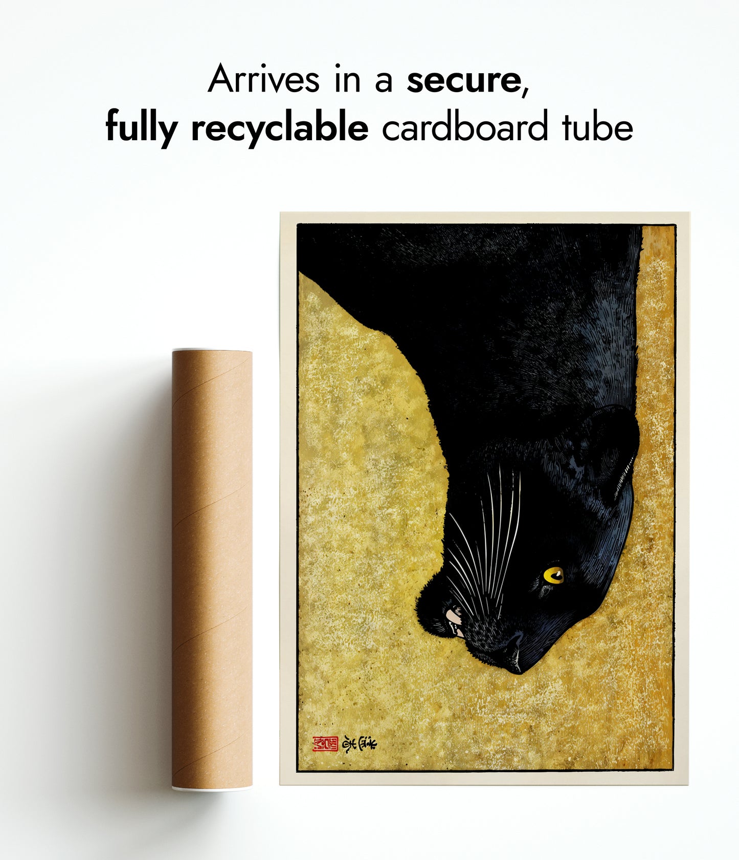 All orders are securely packed in recyclable, eco-friendly solutions. Frames are protected with sustainable bubble wrap alternatives inside thick boxes. Print only orders are shipped in heavy-duty cardboard tubes or protective hard-backed envelopes.