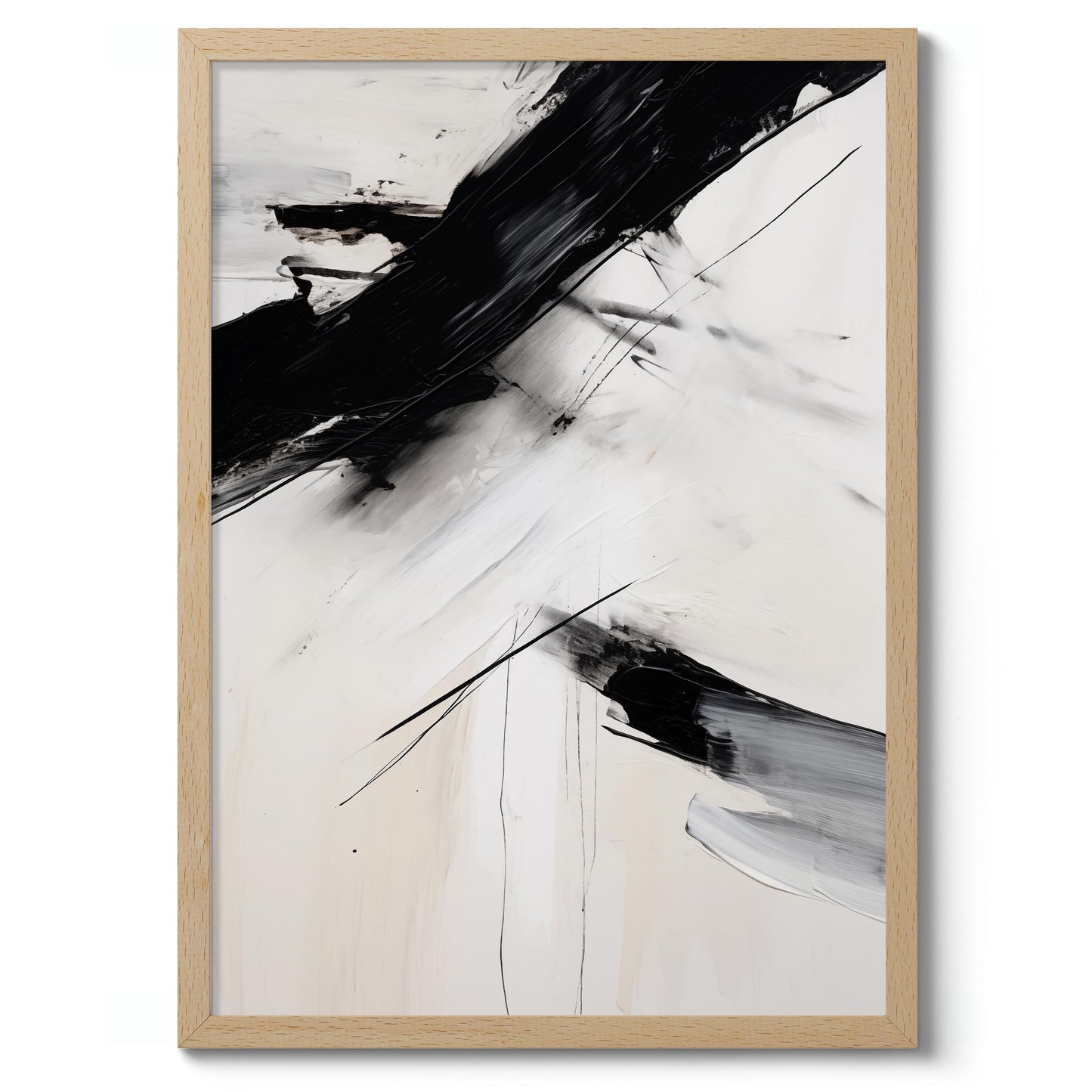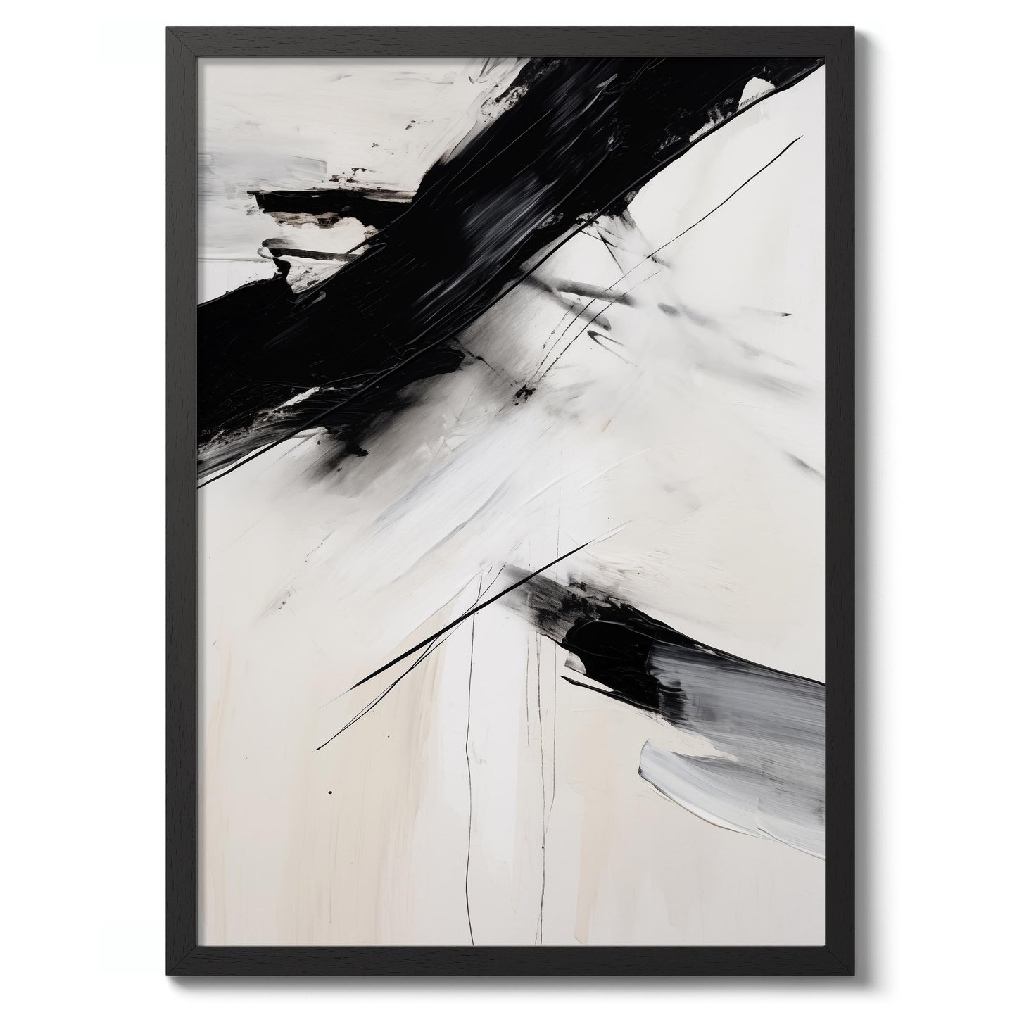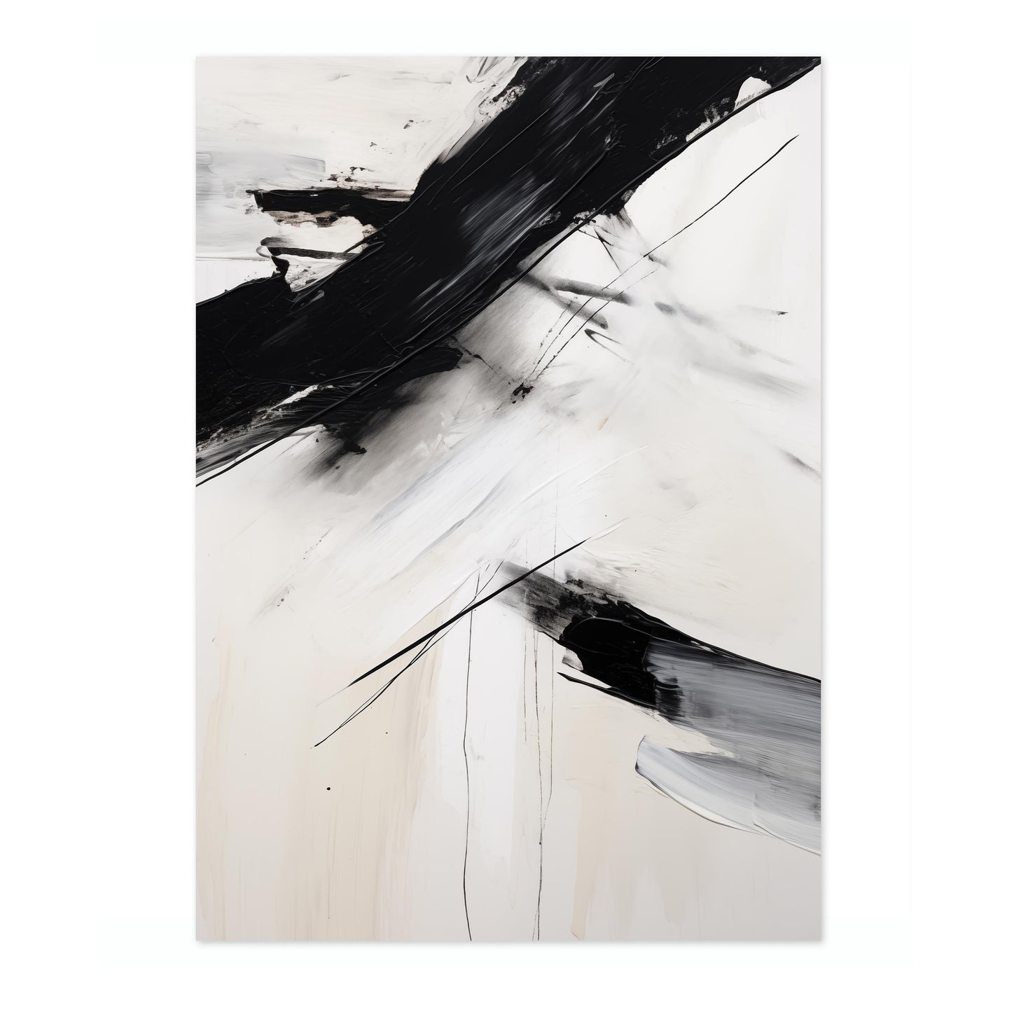 Experience the dynamic contrast of "Black Strokes," a minimalist abstract painting. This portrait poster features bold black brushstrokes against a soft, off-white background, conveying movement and depth. Perfect for adding a touch of modern elegance to your space, this abstract art piece is ideal for those who appreciate simplicity and impactful design.