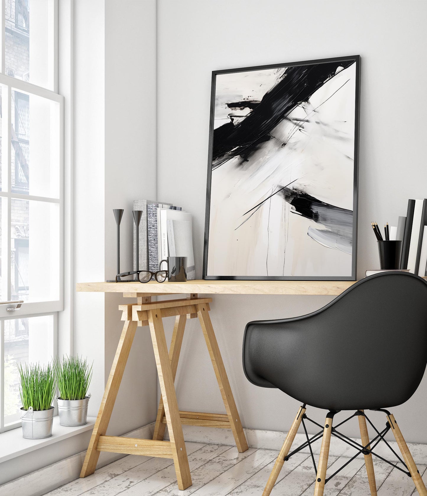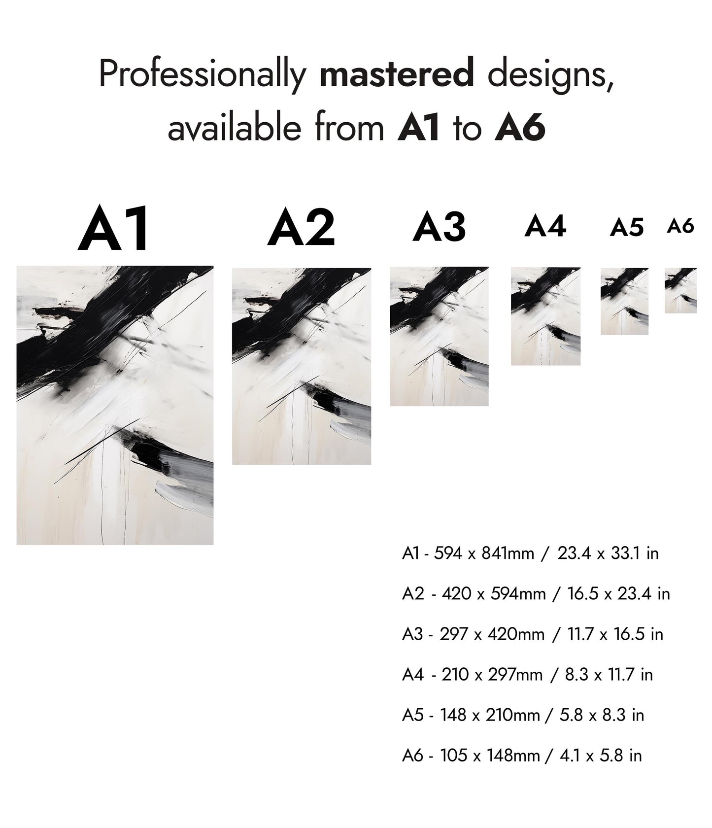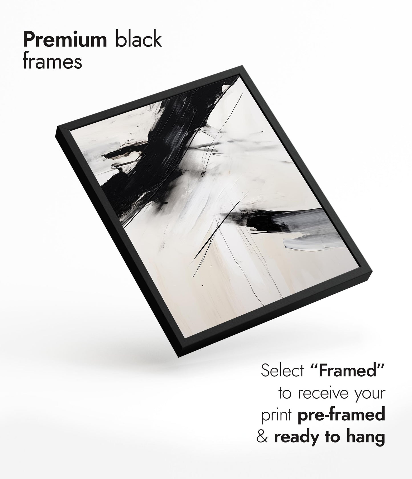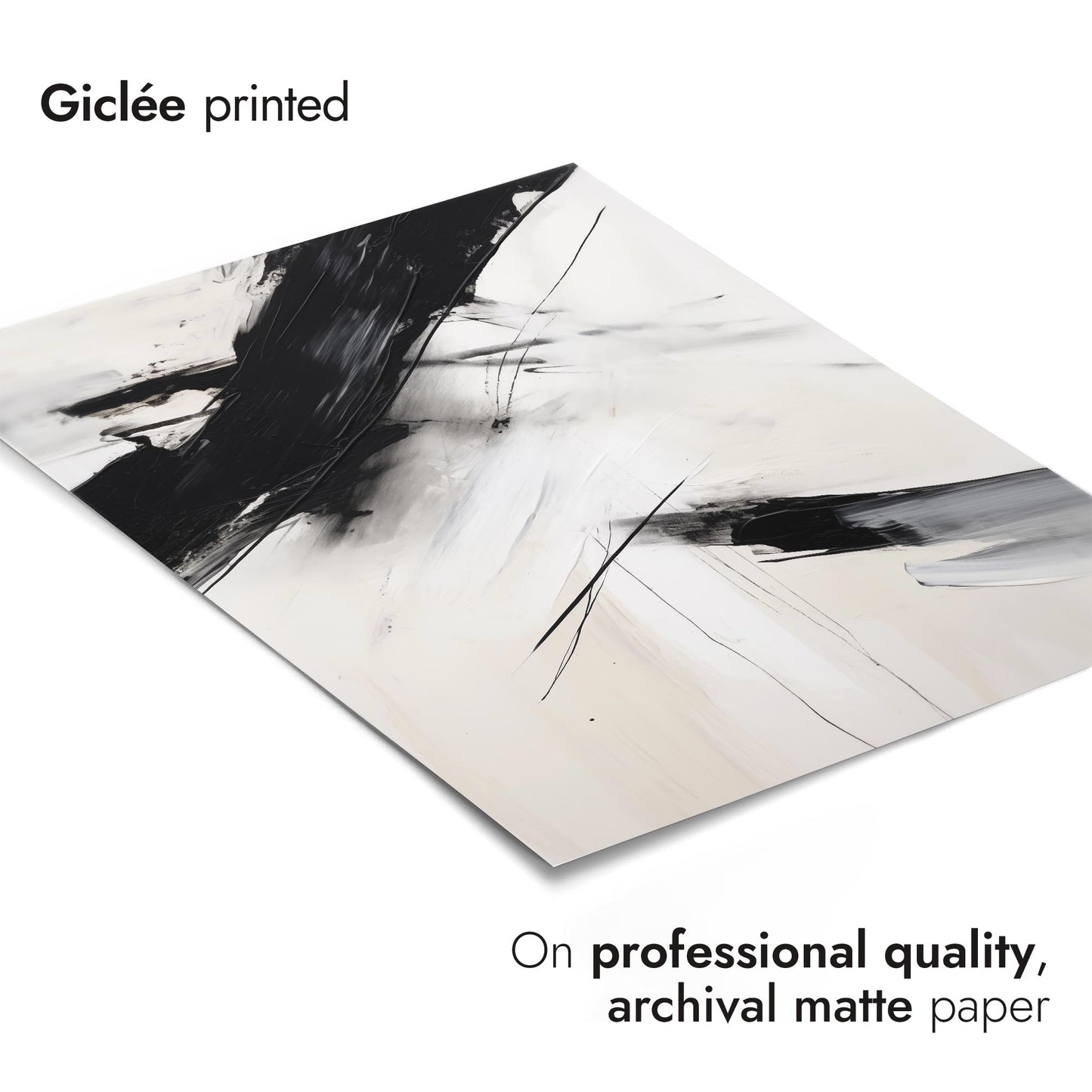 Experience the dynamic contrast of "Black Strokes," a minimalist abstract painting. This portrait poster features bold black brushstrokes against a soft, off-white background, conveying movement and depth. Perfect for adding a touch of modern elegance to your space, this abstract art piece is ideal for those who appreciate simplicity and impactful design.