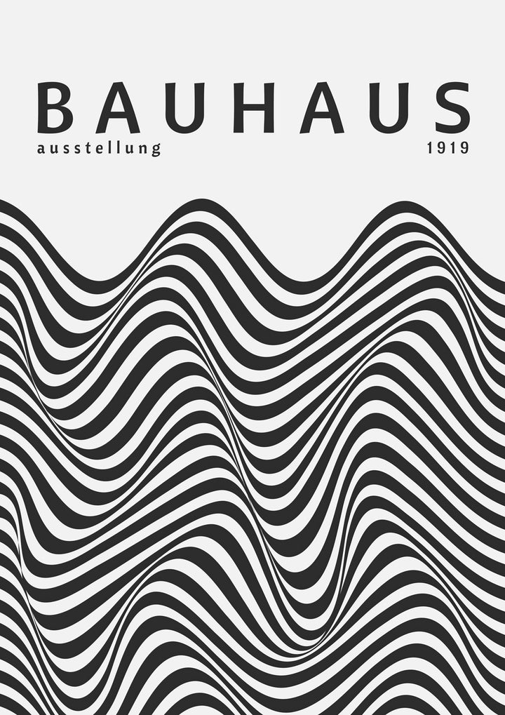 This "Bauhaus Ausstellung 1919" poster showcases a striking abstract design with black and white swirling wave patterns, embodying the essence of the Bauhaus movement. The graphic lines create a hypnotic effect, making a bold statement in any mid-century inspired space. Perfect for lovers of shapes, swirls, and wave motifs. This portrait print artfully combines historical exhibition themes with contemporary design.
