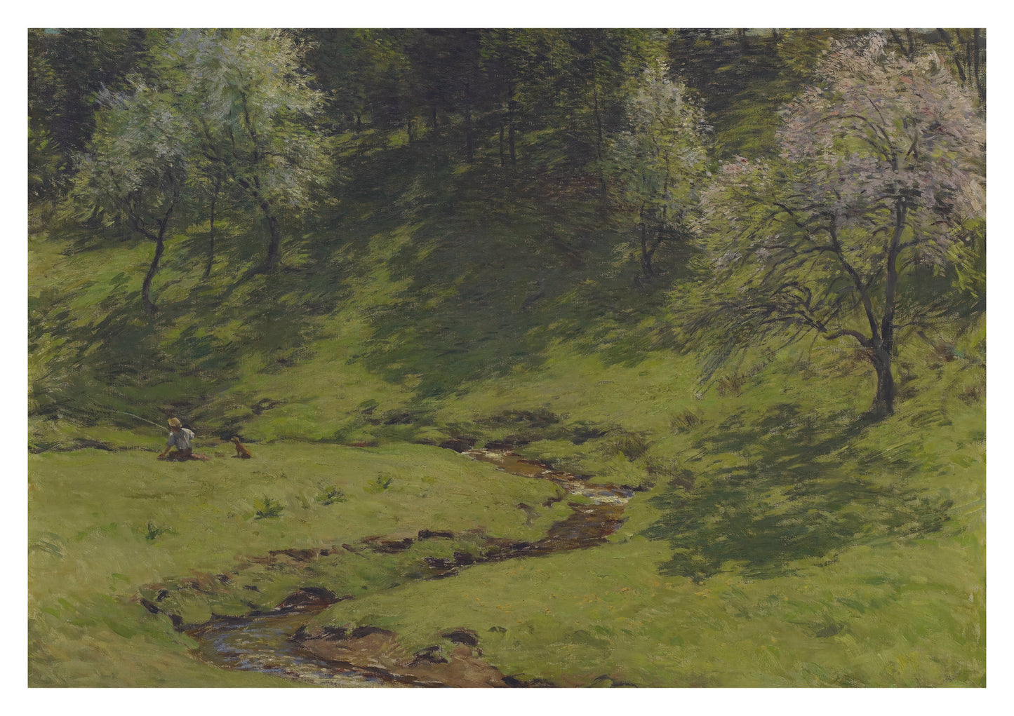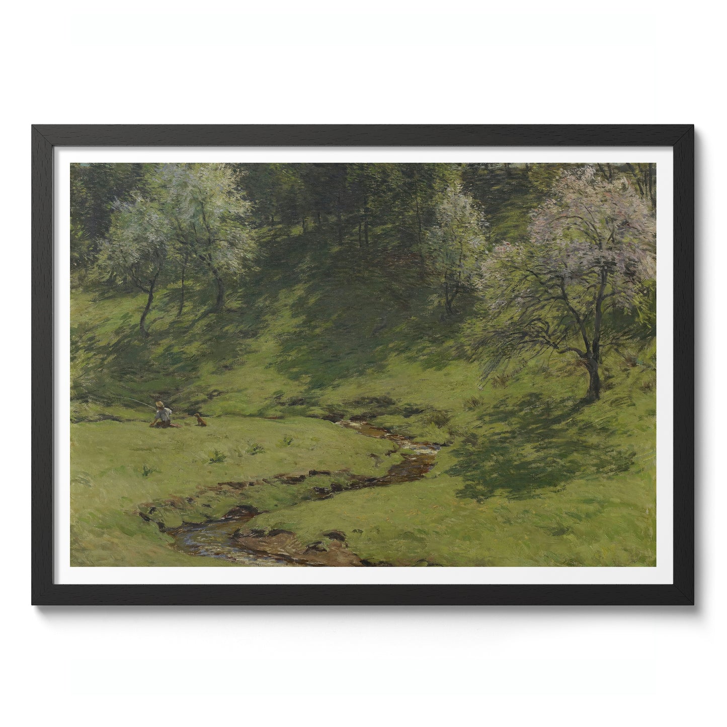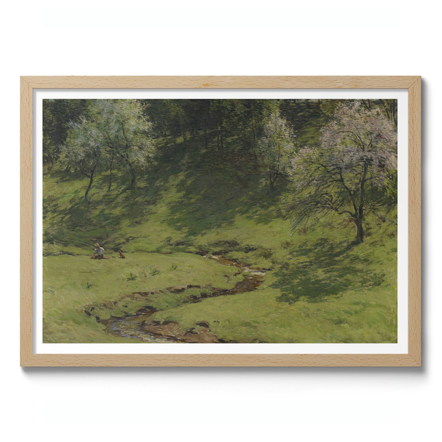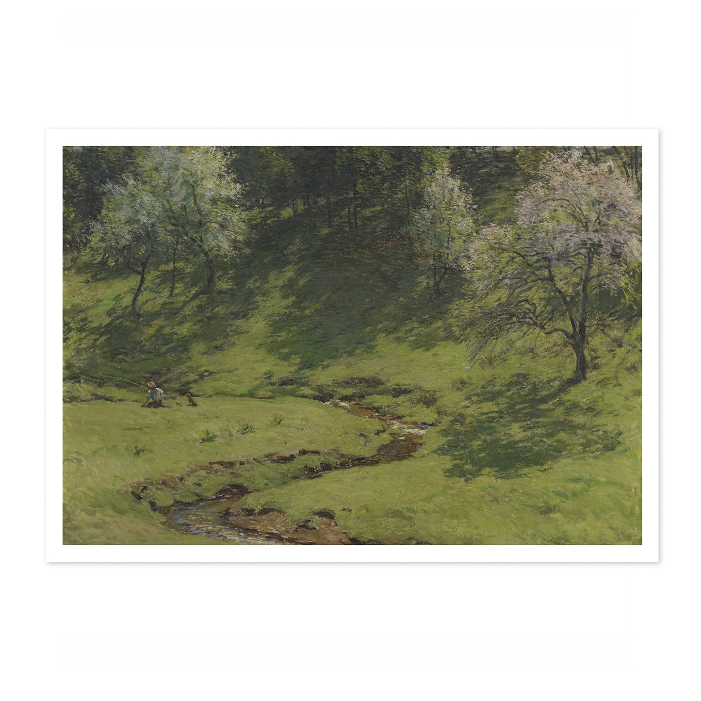 "Blossom Time" by Willard Metcalf captures a serene landscape with lush, green hills, a winding river, and blossoming trees. This Impressionist painting beautifully portrays the tranquility of nature, with subtle, expressive brushstrokes. Ideal as a landscape poster, this artwork evokes a sense of peace and the gentle arrival of spring. Perfect for bringing the charm of nature indoors.