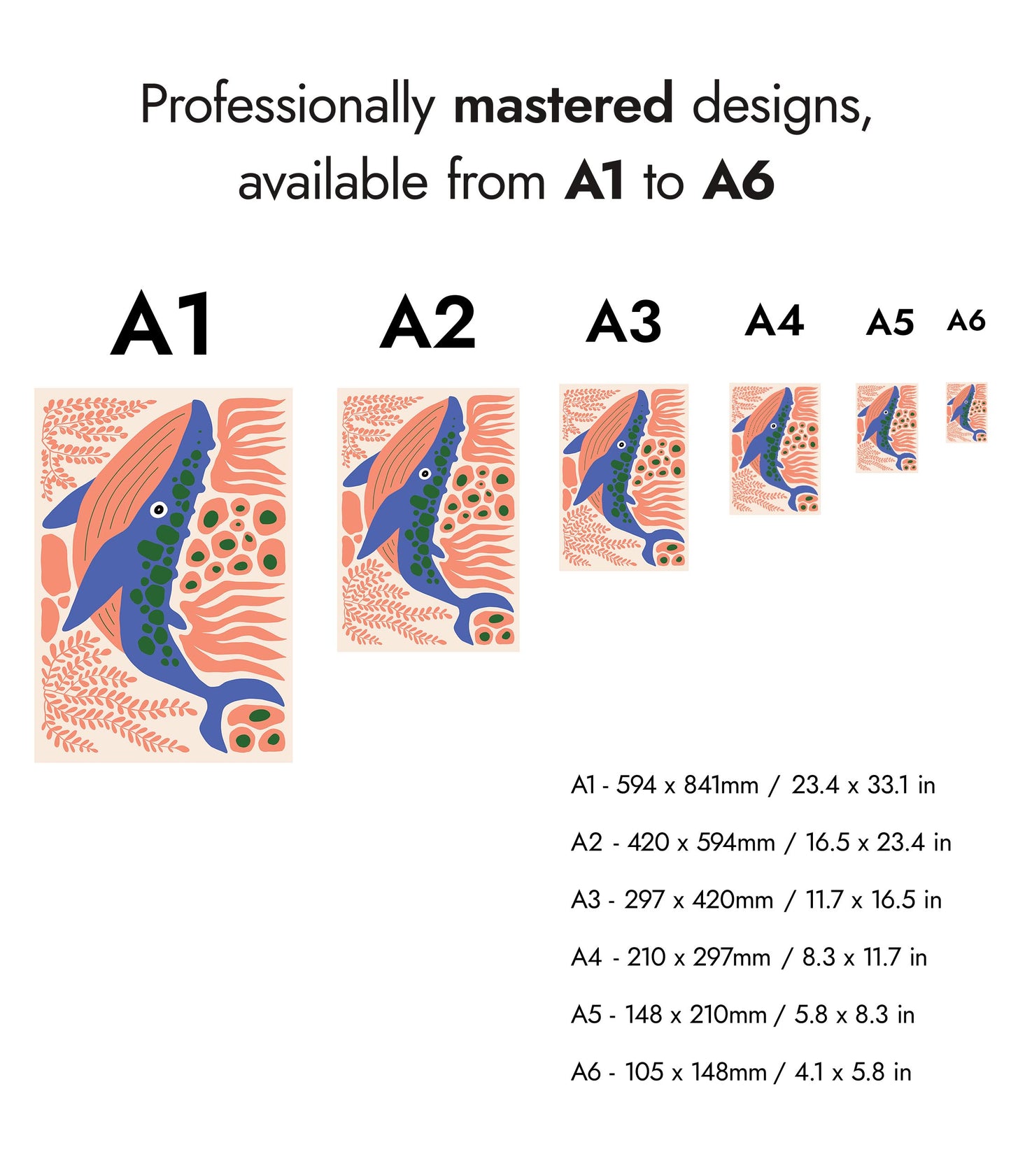 8 colour giclée print process on high-quality 230gsm archival matte paper. All our paper is FSC Certified and prints come with a lifetime fade-resistance guarantee.
