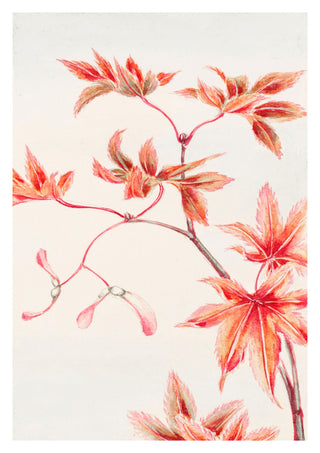 "Branch of Momiji Maple Tree" captures the intricate beauty of Japanese maples with delicate red and orange leaves set against a subtle backdrop. This Japanese traditional woodblock print by Megata Morikaga showcases a serene still life, perfect for lovers of Ukiyo-e and botanical art. This poster adds a touch of elegance and nature-inspired charm to any space.