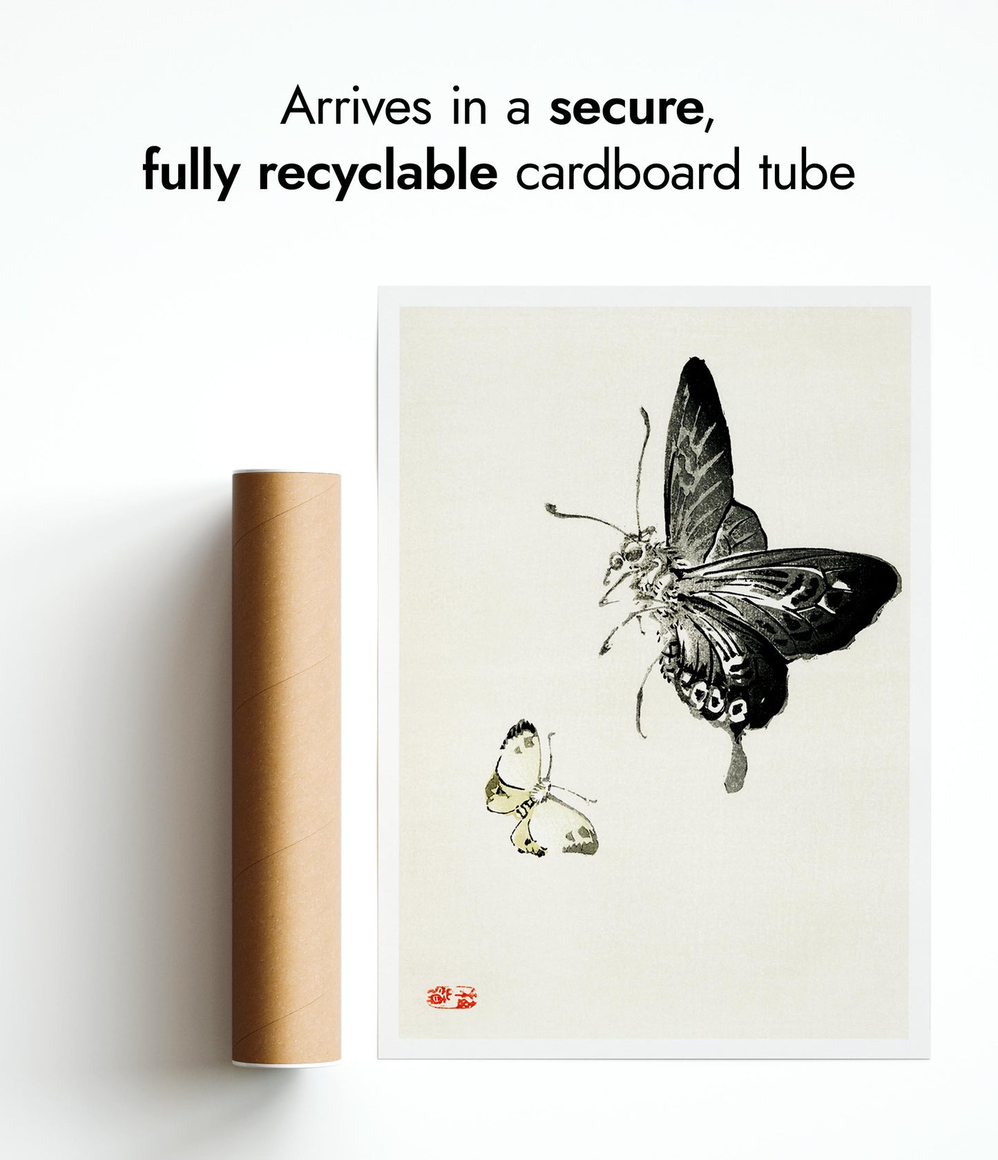 All orders are securely packed in recyclable, eco-friendly solutions. Frames are protected with sustainable bubble wrap alternatives inside thick boxes. Print only orders are shipped in heavy-duty cardboard tubes or protective hard-backed envelopes.