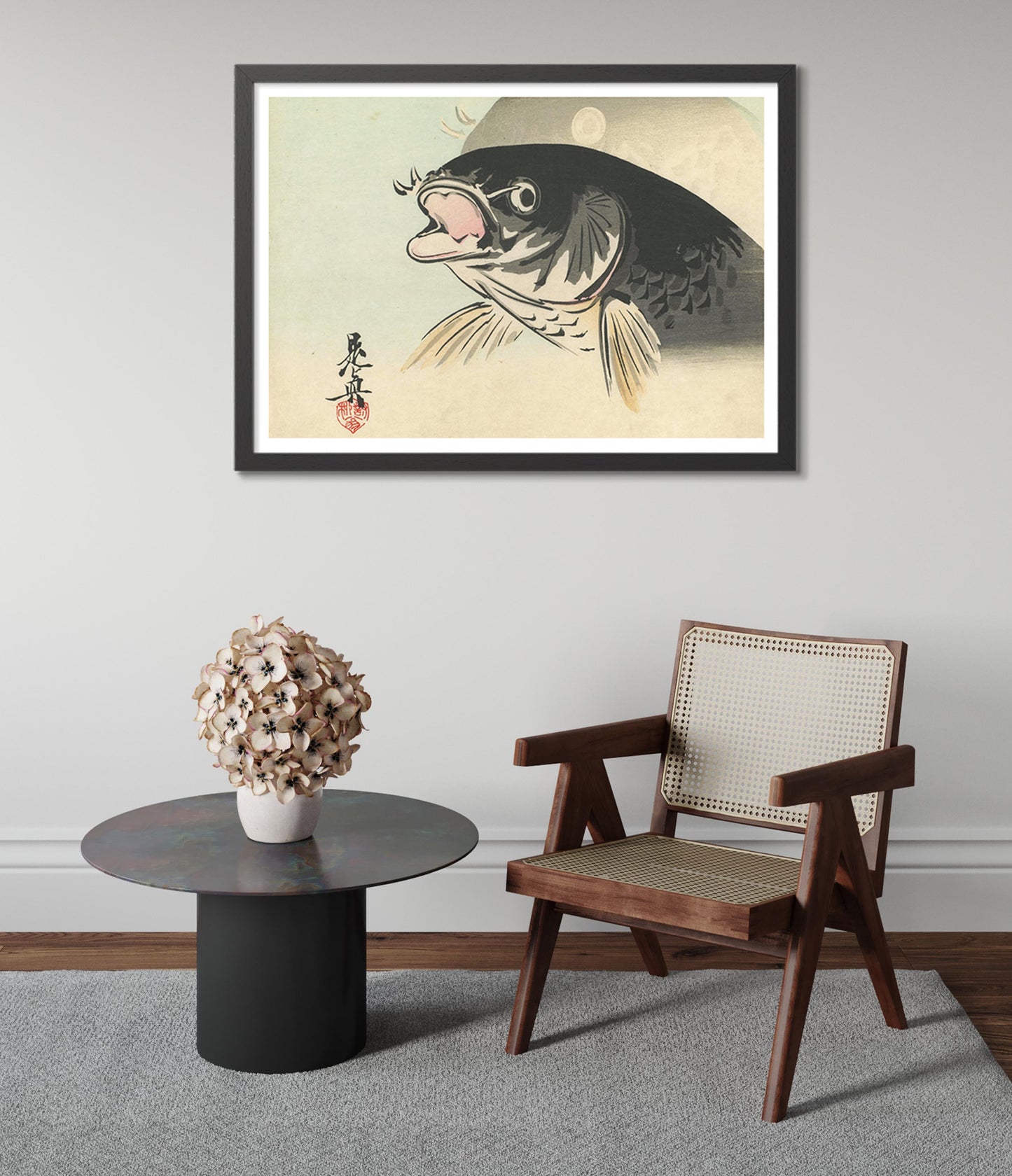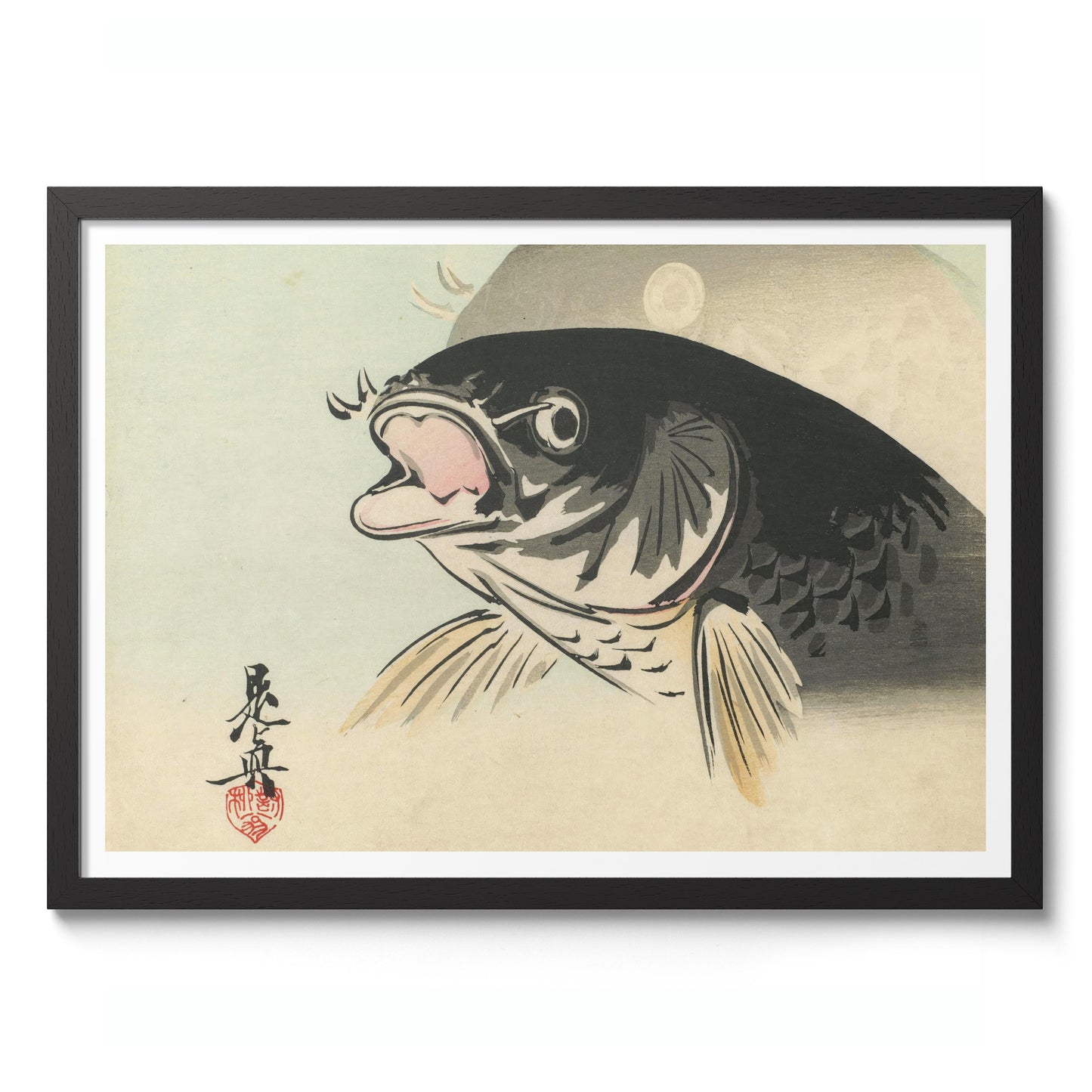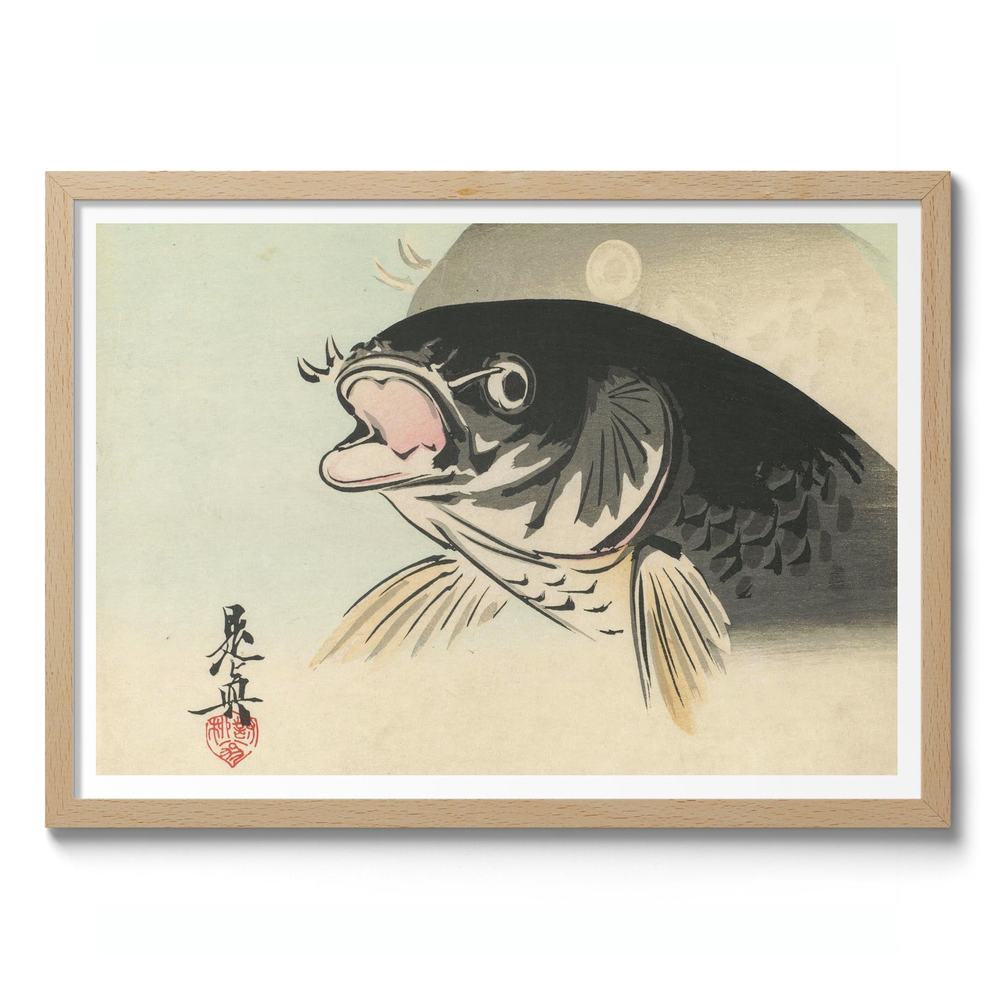 This poster, titled "Carp" by Shibata Zeshin, showcases a traditional Japanese painting of a carp fish in a serene landscape. The artwork captures the intricate details and graceful motion of the fish, blending soft colours and delicate brushstrokes typical of Japanese aesthetics. Perfect for adding a touch of cultural elegance to any space.