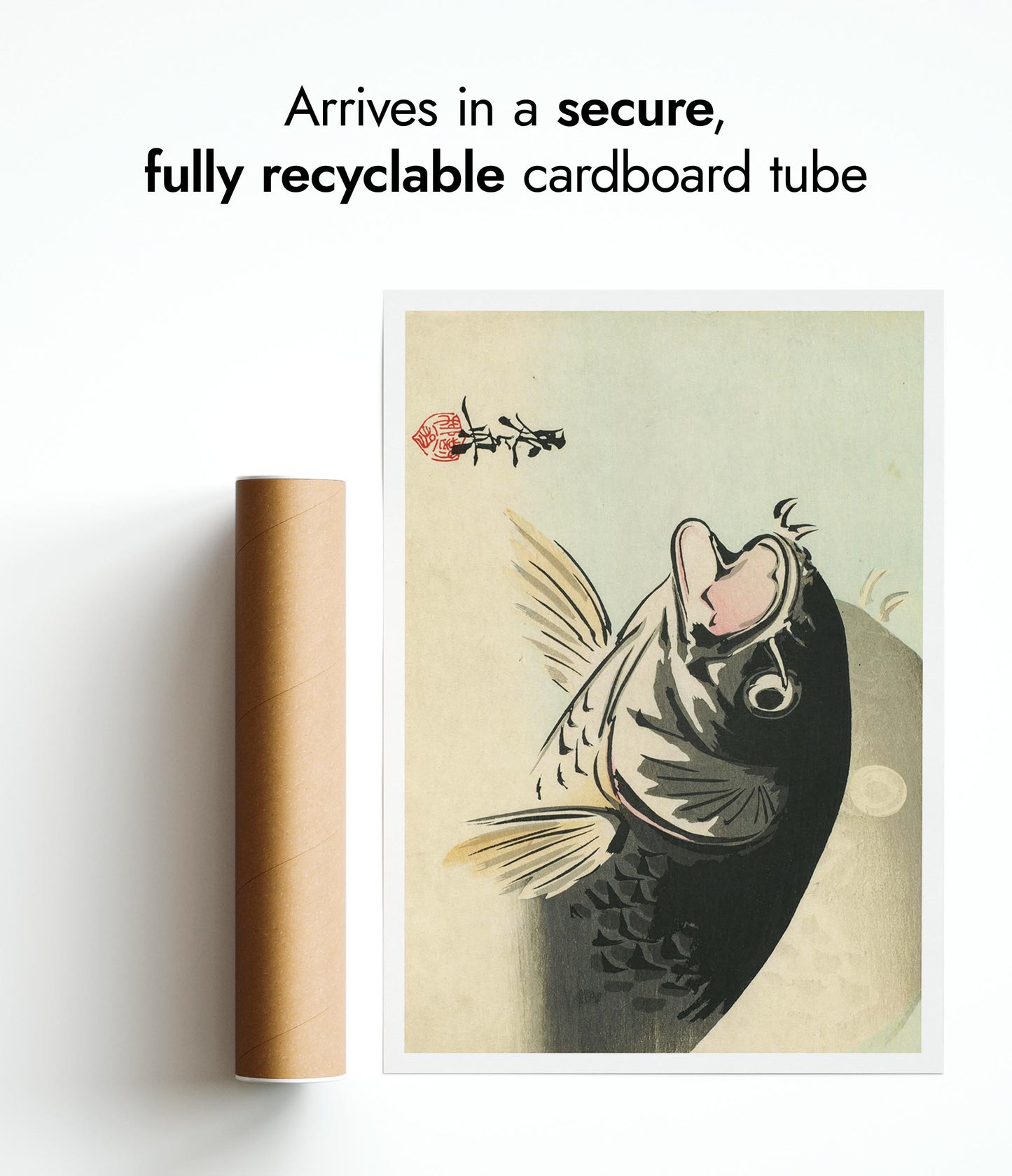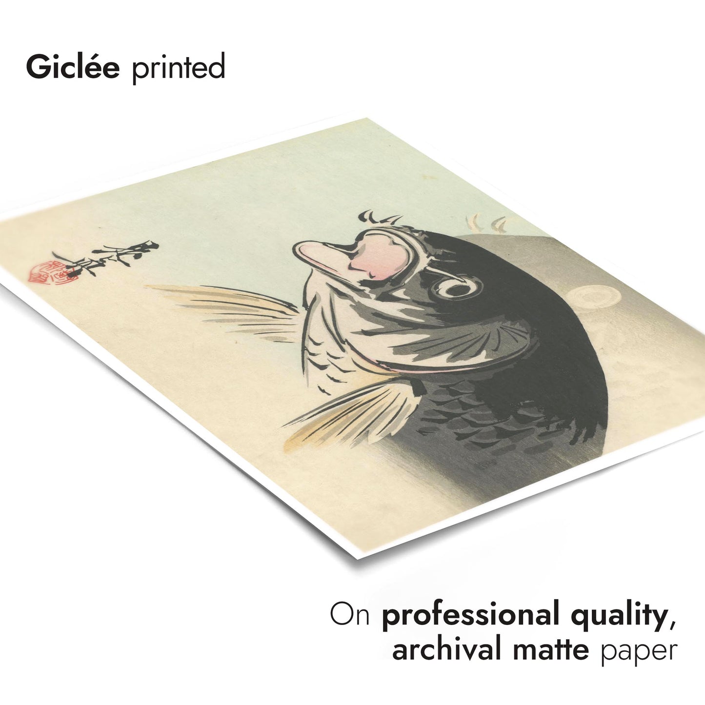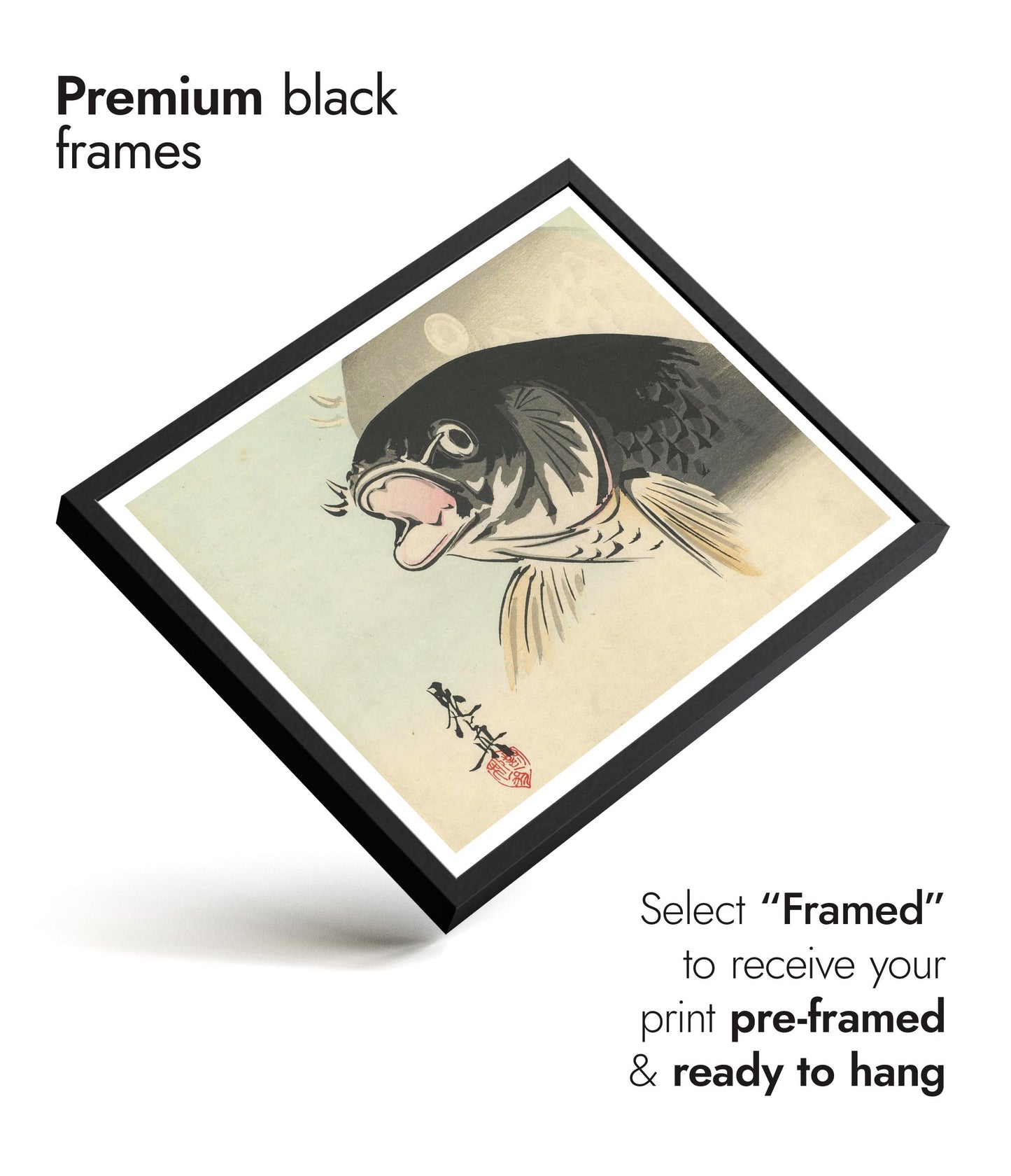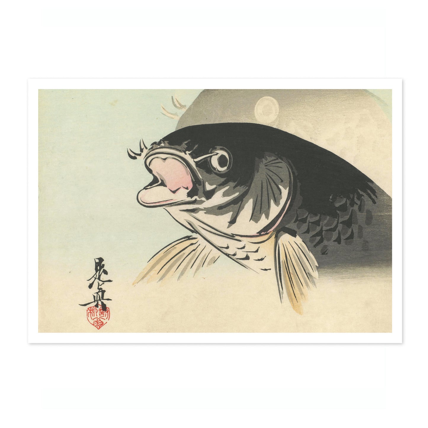 This poster, titled "Carp" by Shibata Zeshin, showcases a traditional Japanese painting of a carp fish in a serene landscape. The artwork captures the intricate details and graceful motion of the fish, blending soft colours and delicate brushstrokes typical of Japanese aesthetics. Perfect for adding a touch of cultural elegance to any space.