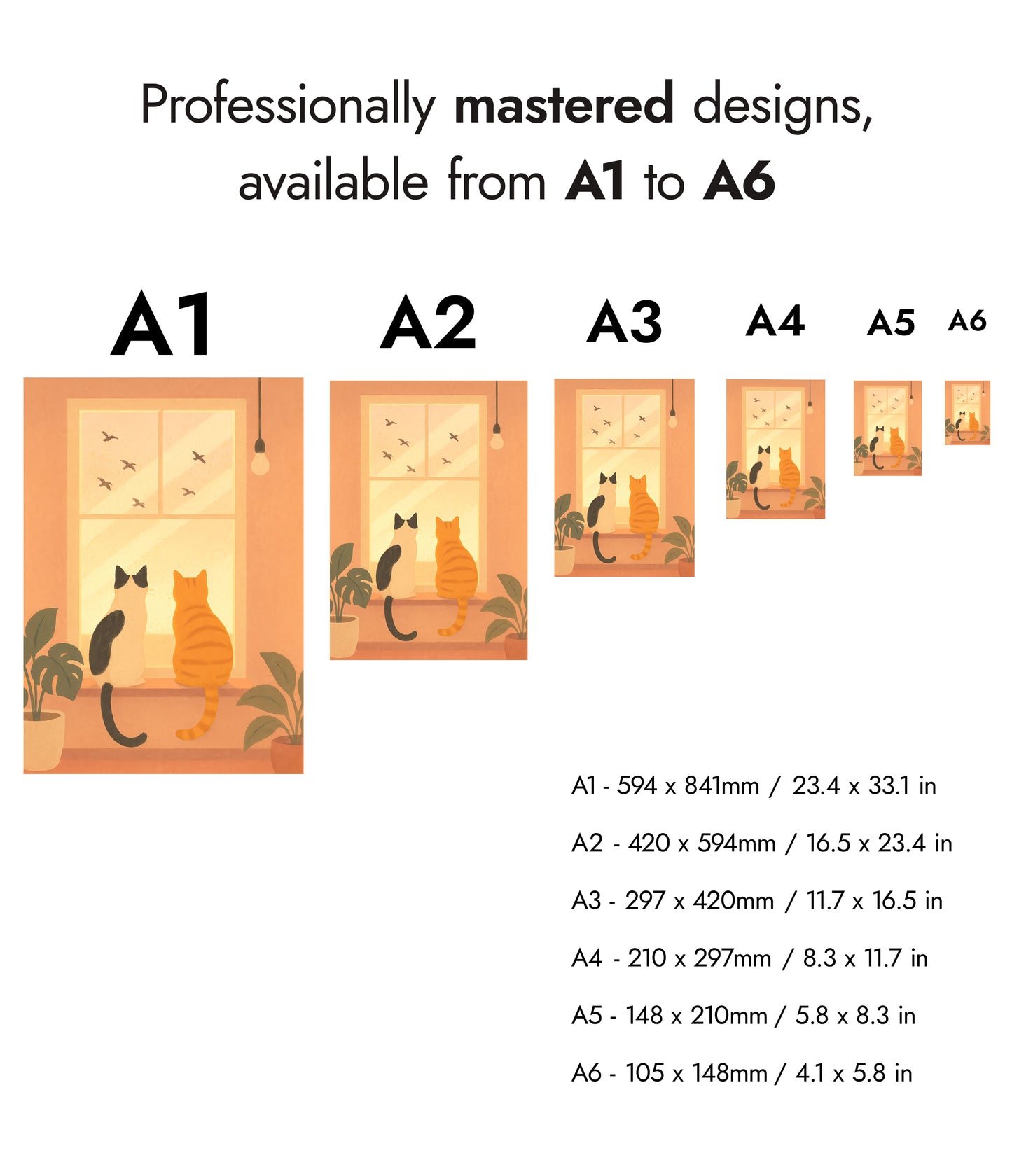 8 colour giclée print process on high-quality 230gsm archival matte paper. All our paper is FSC Certified and prints come with a lifetime fade-resistance guarantee.