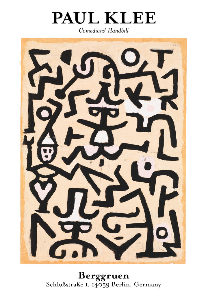Transform your space with "Comedians' Handbill" by Paul Klee. This abstract poster showcases Klee's signature use of bold lines and whimsical shapes, creating a playful yet sophisticated design. Ideal for fans of mid-century modern art, this illustration captures the essence of abstract themes and line art, making it a distinctive addition to any room.