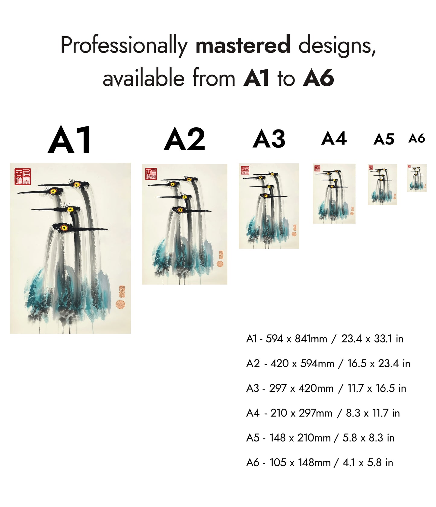 8 colour gicleé print process on FSC-certified 200gsm archival matte paper, with lifetime fade-resistance guaranteed.