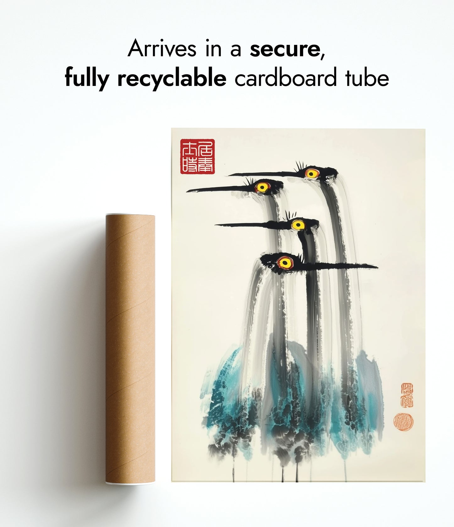 All orders are securely packed in recyclable, eco-friendly solutions. Frames are protected with sustainable bubble wrap alternatives inside thick boxes. Print only orders are shipped in heavy-duty cardboard tubes or protective hard-backed envelopes.
