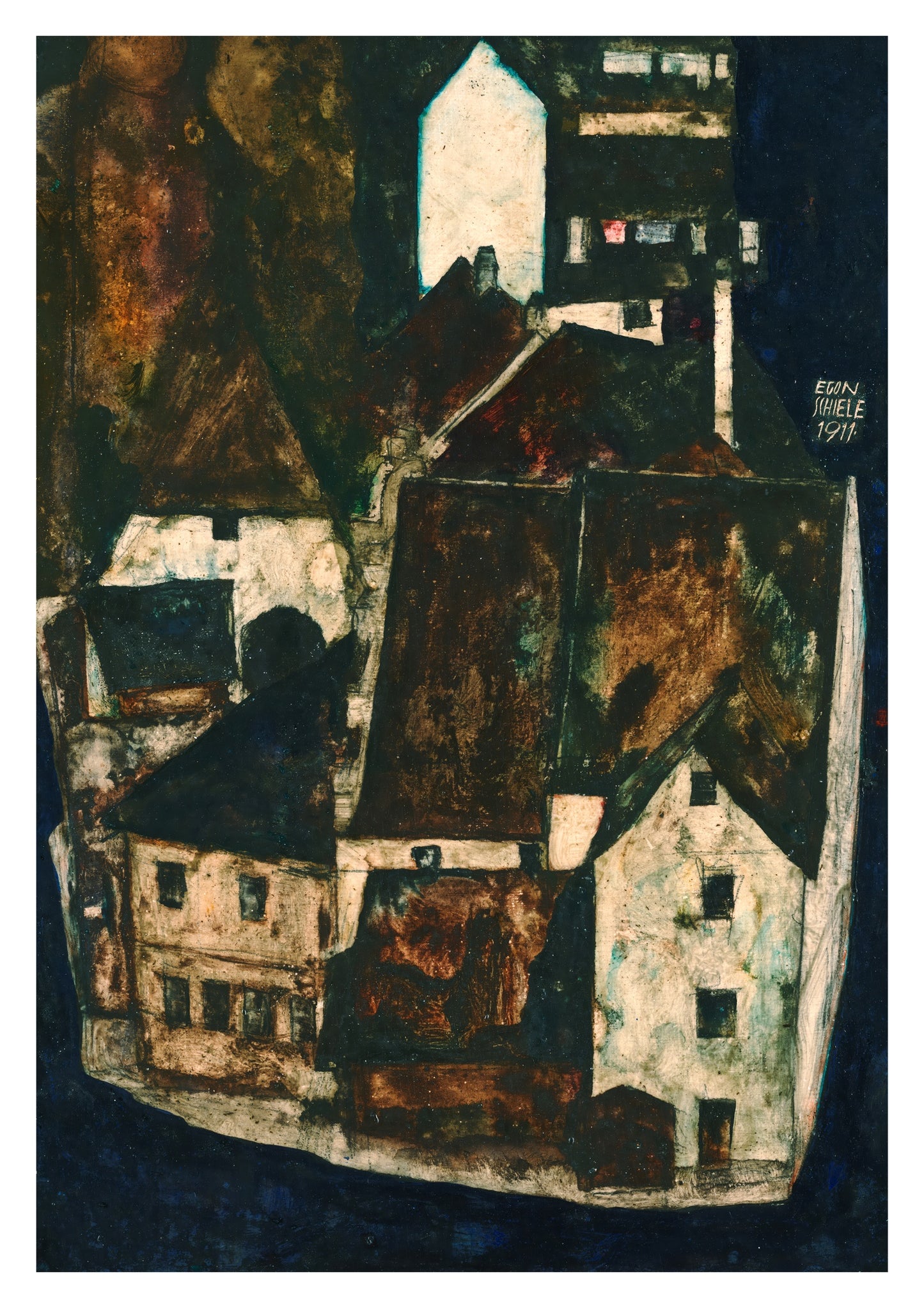 Capture the haunting beauty of Egon Schiele's "Dead City III (City on the Blue River)" with this expressionist poster. The artwork portrays a secluded village with dark, textured buildings nestled beside a mysterious river. The intricate details and muted tones reflect Schiele's distinctive style. Perfect for adding a touch of historical and artistic depth to any space.