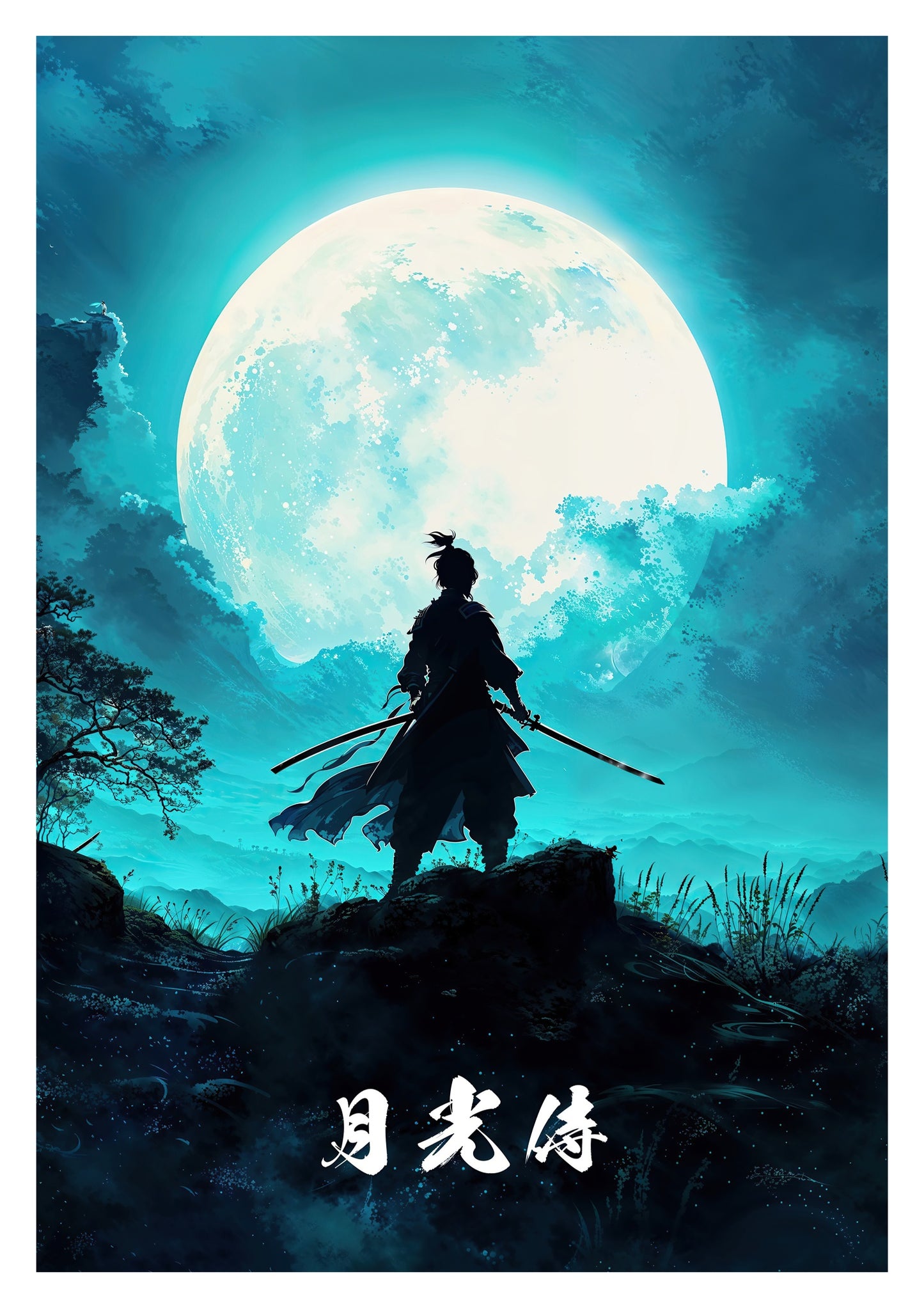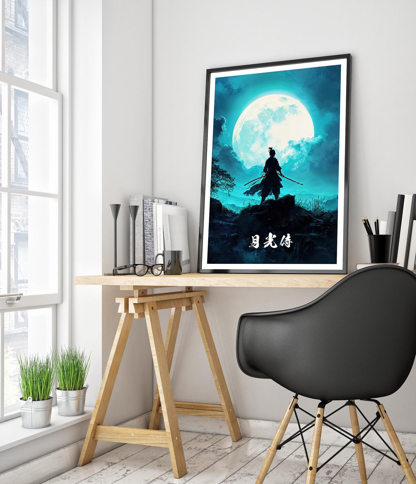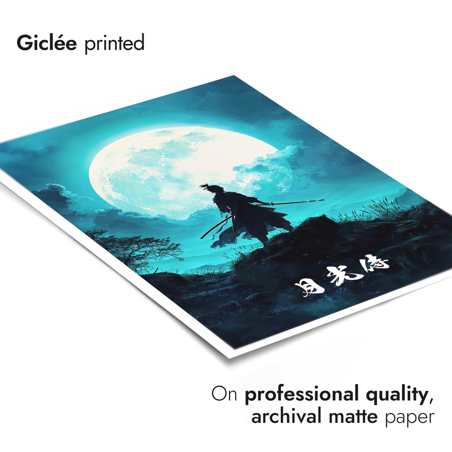 This "Demon Killer" poster showcases a striking silhouette of a samurai warrior against a luminous full moon. The modern anime illustration captures the essence of valor and mystery, blending vibrant blues and deep blacks. Ideal for fans of samurai and ninja themes, this portrait combines traditional elements with a contemporary art style. Perfect for enhancing any living space or personal sanctuary.