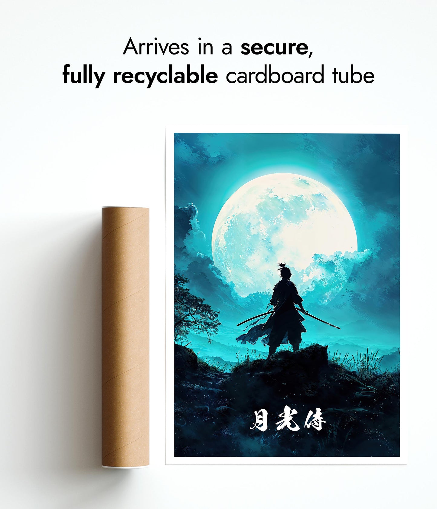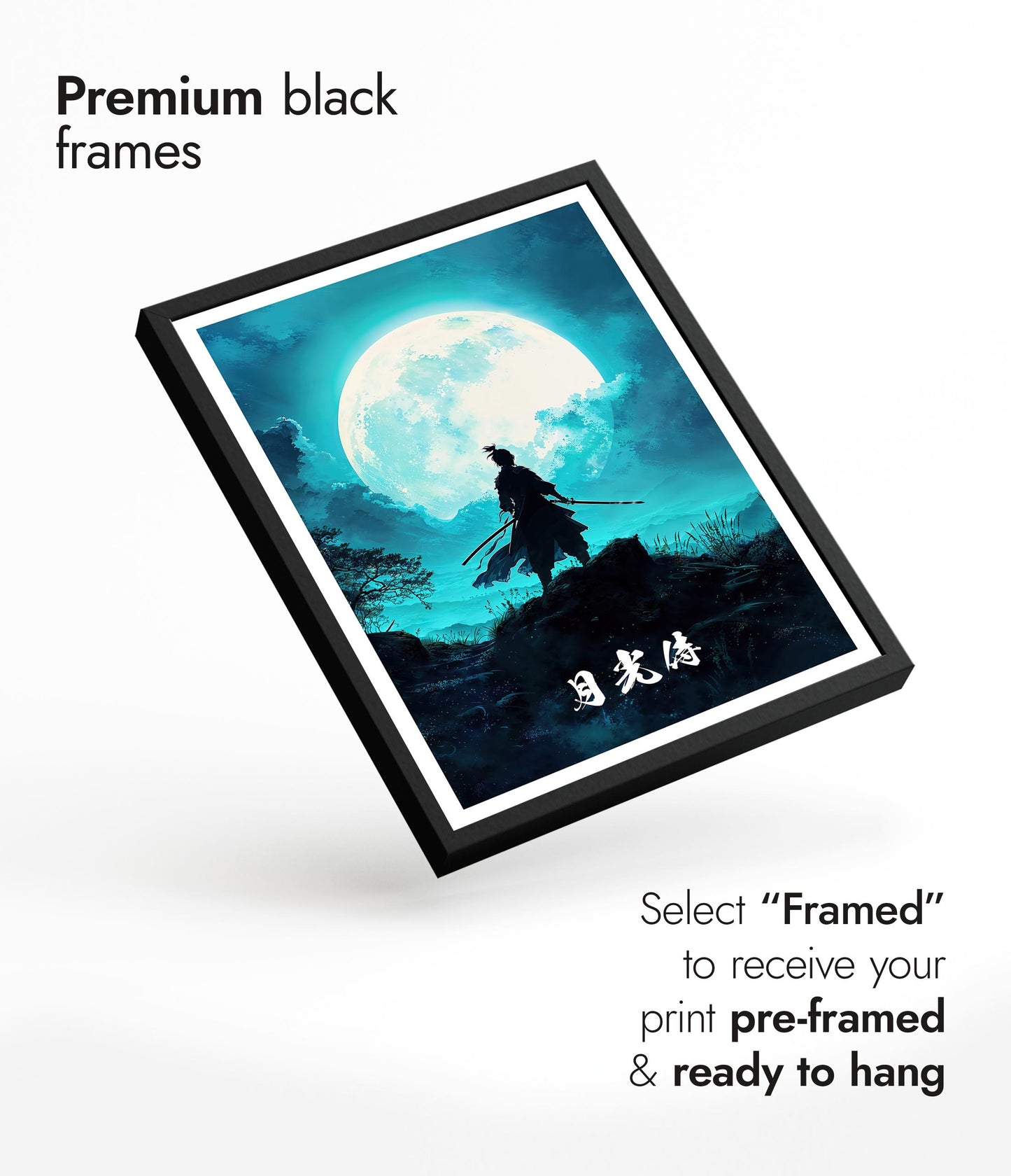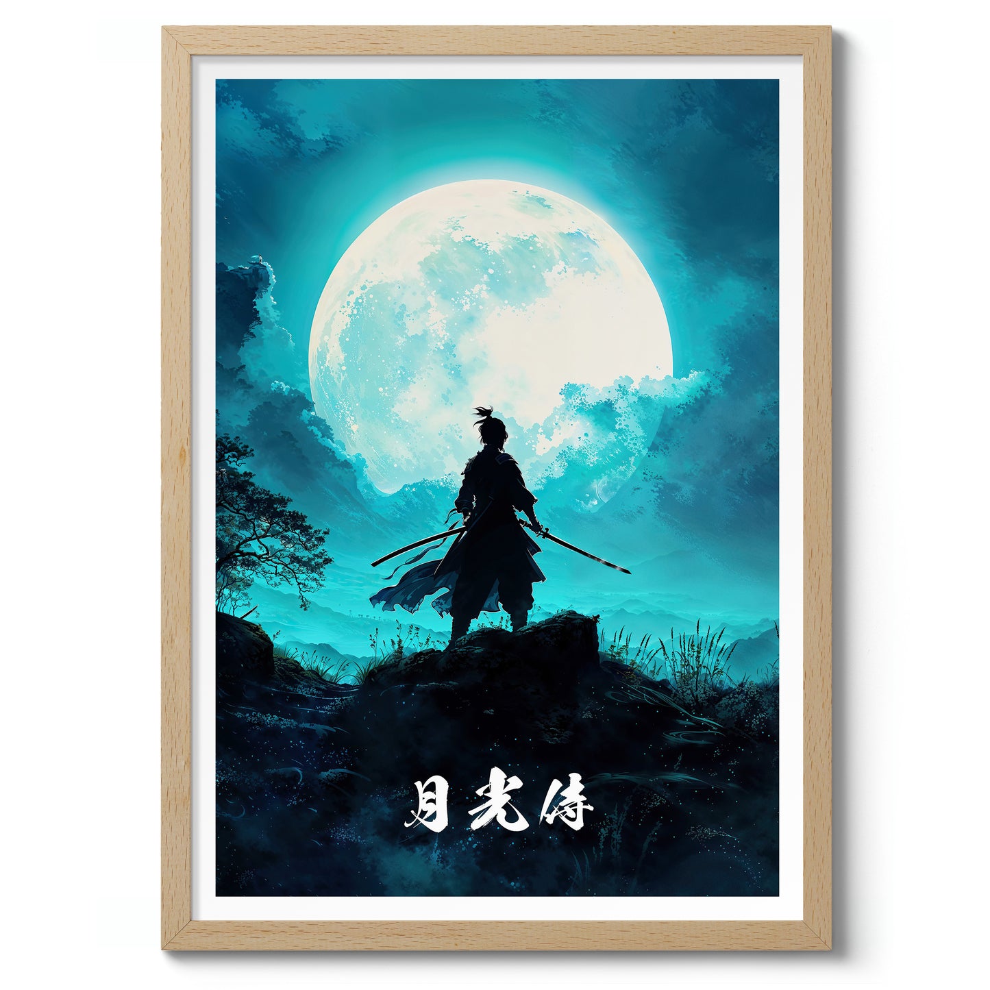 This "Demon Killer" poster showcases a striking silhouette of a samurai warrior against a luminous full moon. The modern anime illustration captures the essence of valor and mystery, blending vibrant blues and deep blacks. Ideal for fans of samurai and ninja themes, this portrait combines traditional elements with a contemporary art style. Perfect for enhancing any living space or personal sanctuary.