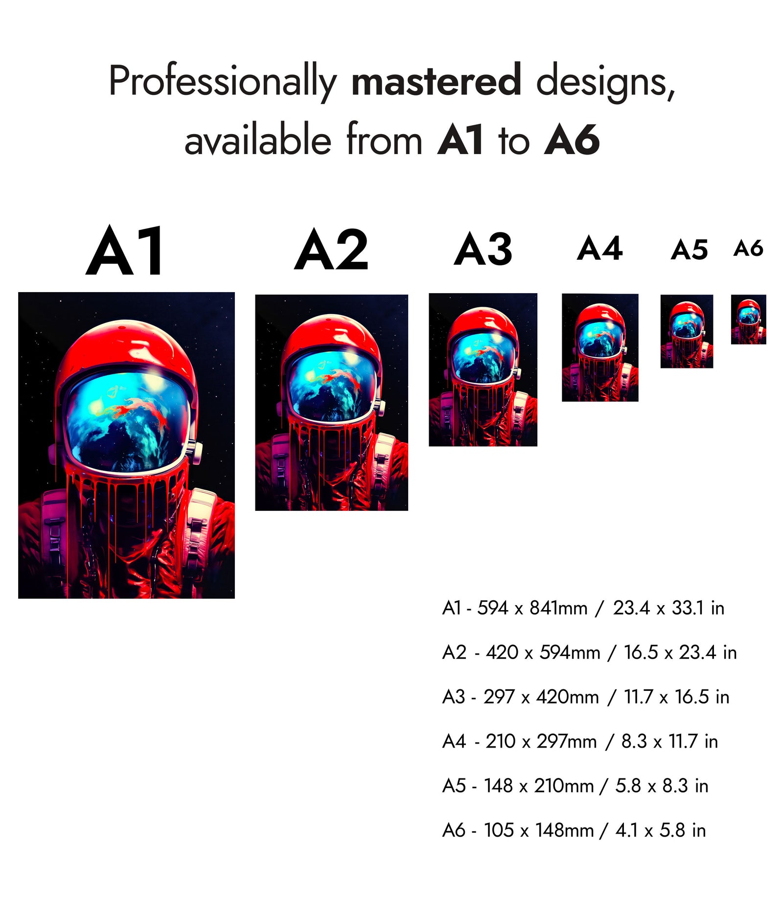 8 colour giclée print process on high-quality 230gsm archival matte paper. All our paper is FSC Certified and prints come with a lifetime fade-resistance guarantee.
