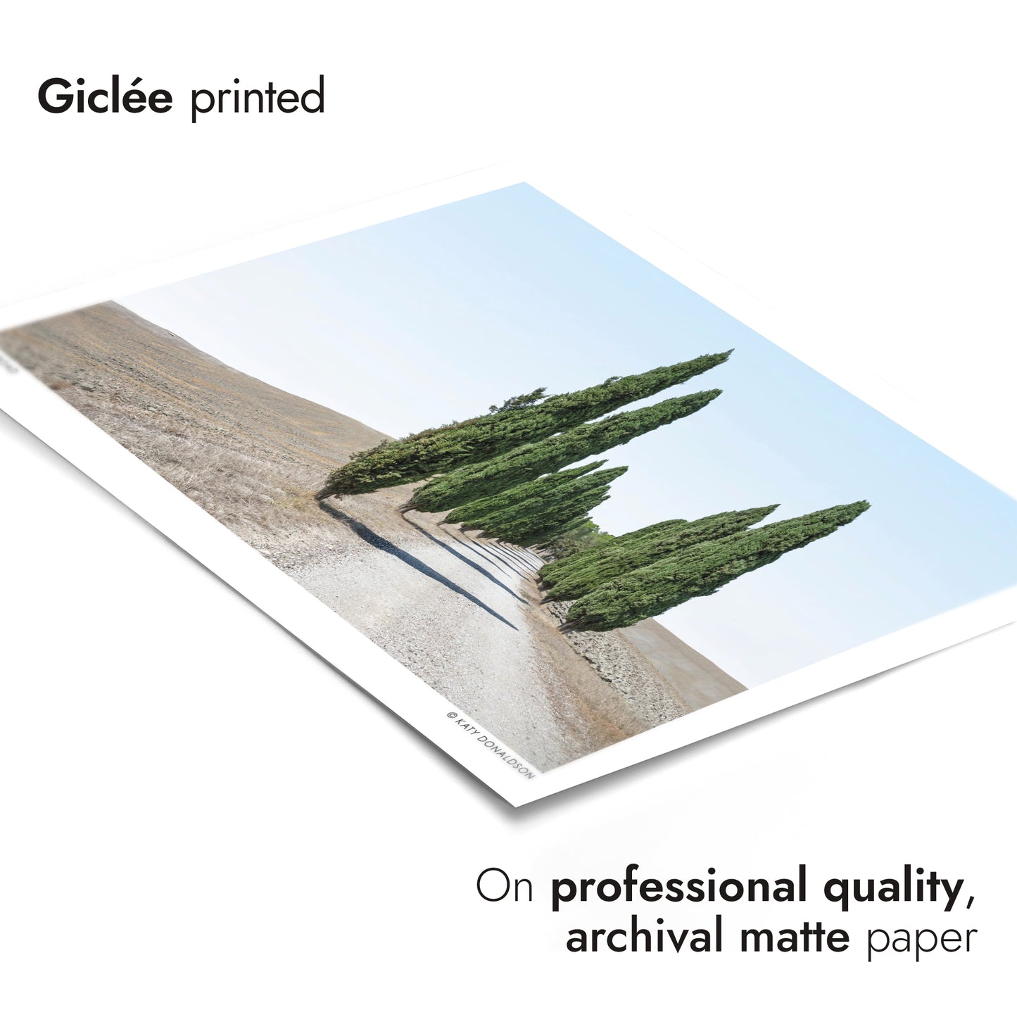8 colour giclée print process on high-quality 230gsm archival matte paper. All our paper is FSC Certified and prints come with a lifetime fade-resistance guarantee.