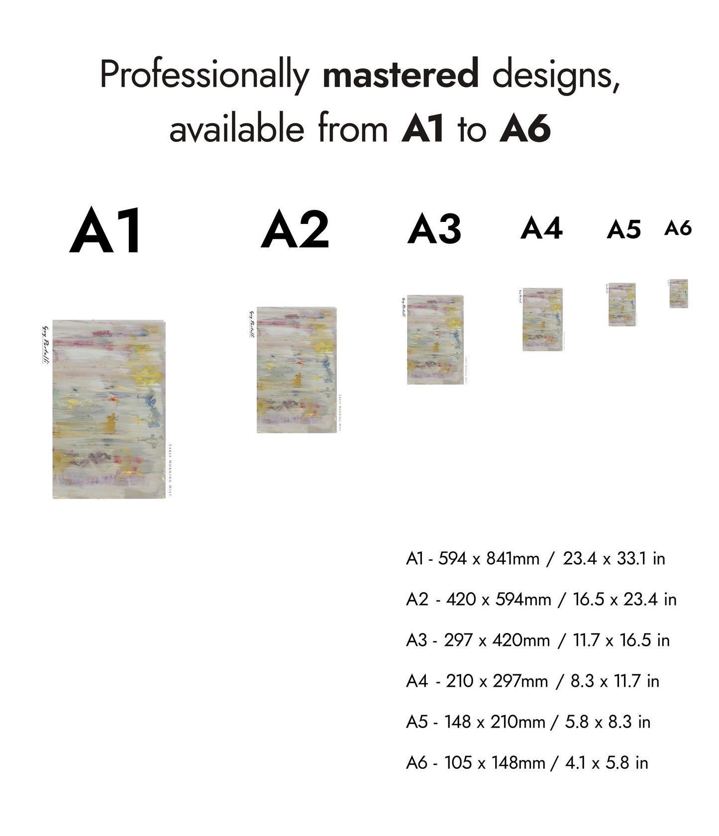 8 colour giclée print process on high-quality 230gsm archival matte paper. All our paper is FSC Certified and prints come with a lifetime fade-resistance guarantee.
