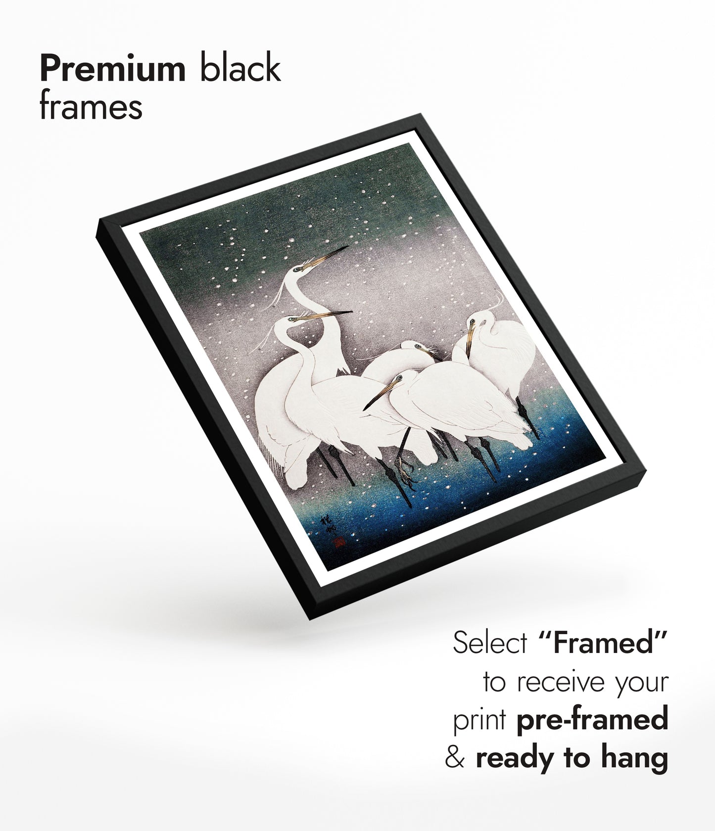 Solid wood frames available in black stained or natural finishes, with UV resistant acrylic glass. Framed orders arrive pre-installed with your choice of print, ready to hang. Available in all print sizes.