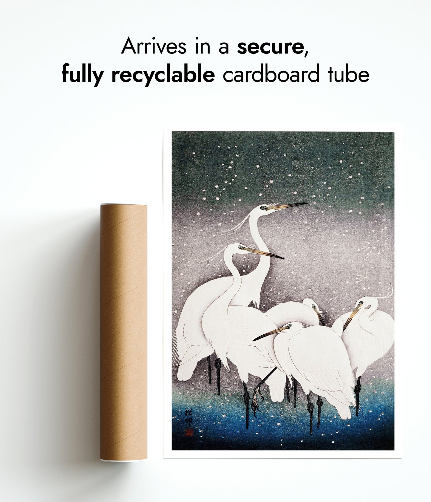All orders are securely packed in recyclable, eco-friendly solutions. Frames are protected with sustainable bubble wrap alternatives inside thick boxes. Print only orders are shipped in heavy-duty cardboard tubes or protective hard-backed envelopes.
