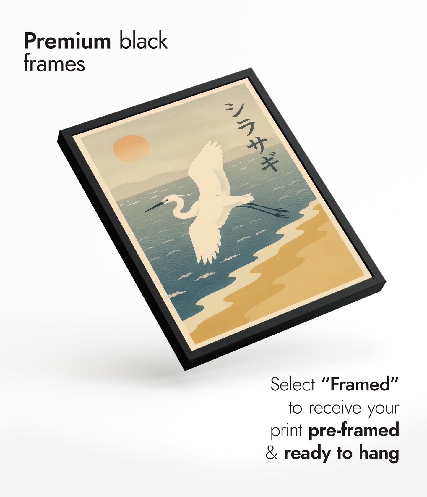 Solid wood frames available in black stained or natural finishes, with UV resistant acrylic glass. Framed orders arrive pre-installed with your choice of print, ready to hang. Available in all print sizes.