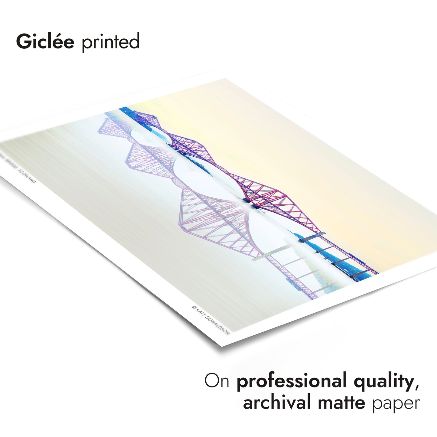 8 colour giclée print process on high-quality 230gsm archival matte paper. All our paper is FSC Certified and prints come with a lifetime fade-resistance guarantee.