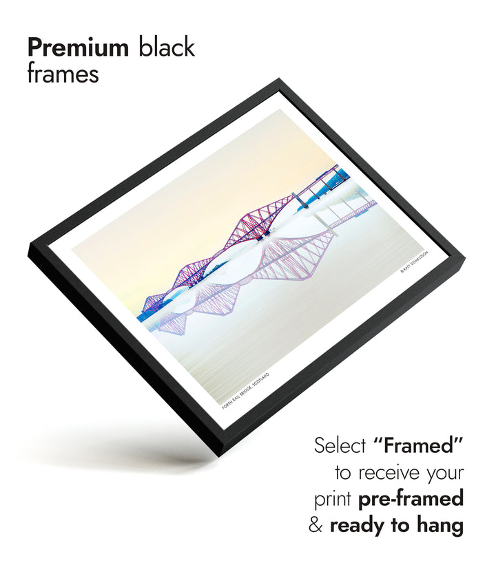 Solid wood frames available in black stained or natural finishes, with UV resistant acrylic glass. Framed orders arrive pre-installed with your choice of print, ready to hang. Available in all print sizes.