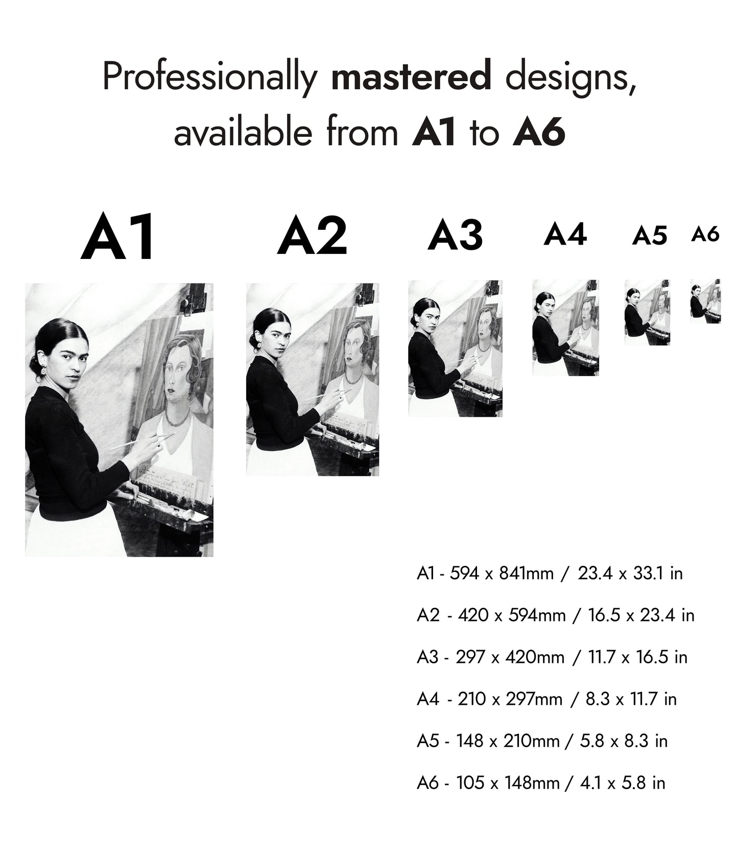 8 colour giclée print process on high-quality 230gsm archival matte paper. All our paper is FSC Certified and prints come with a lifetime fade-resistance guarantee.
