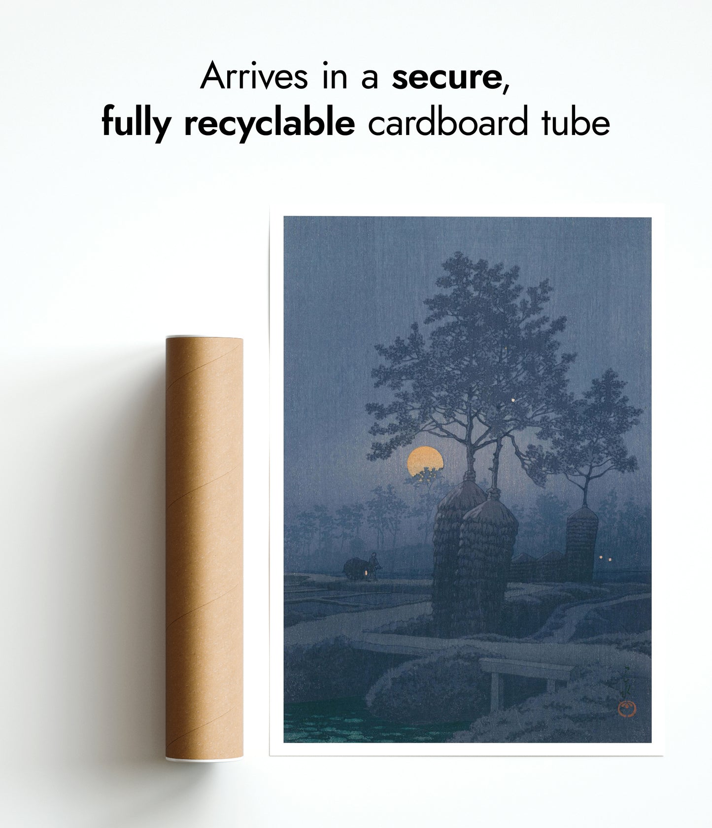 All orders are securely packed in recyclable, eco-friendly solutions. Frames are protected with sustainable bubble wrap alternatives inside thick boxes. Print only orders are shipped in heavy-duty cardboard tubes or protective hard-backed envelopes.