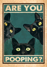 This playful wall art features two poster prints with humorous cat illustrations. One shows curious cats with the caption "Are You Pooping?", and the other a cat reminding you "Remember to Wipe". Designed with vibrant colours and bold text, these prints make for eye-catching gallery wall additions, perfect for enhancing bathroom decor with a touch of humour.