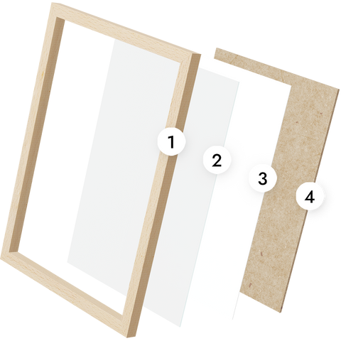 Rigid board to seal your print in place & stiffen the frame, with fixings attached, ready to hang.