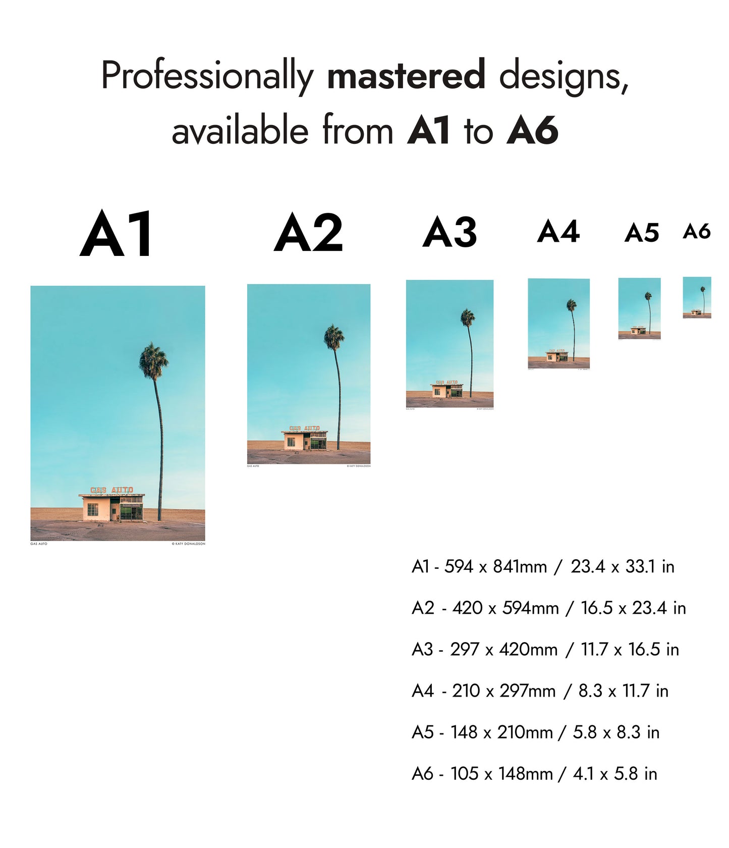 8 colour giclée print process on high-quality 230gsm archival matte paper. All our paper is FSC Certified and prints come with a lifetime fade-resistance guarantee.