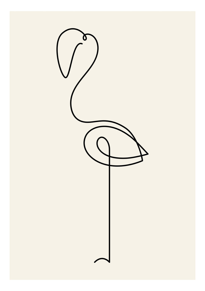 The "Graceful Flamboyance" poster features an elegant line art illustration of a flamingo in a minimalist, Scandinavian style. Its sleek, continuous black lines form the bird’s distinctive shape against a soft, neutral background. Perfect for adding a touch of modern simplicity to any space. Ideal for those seeking minimalist or Scandi décor with a nature-inspired theme.