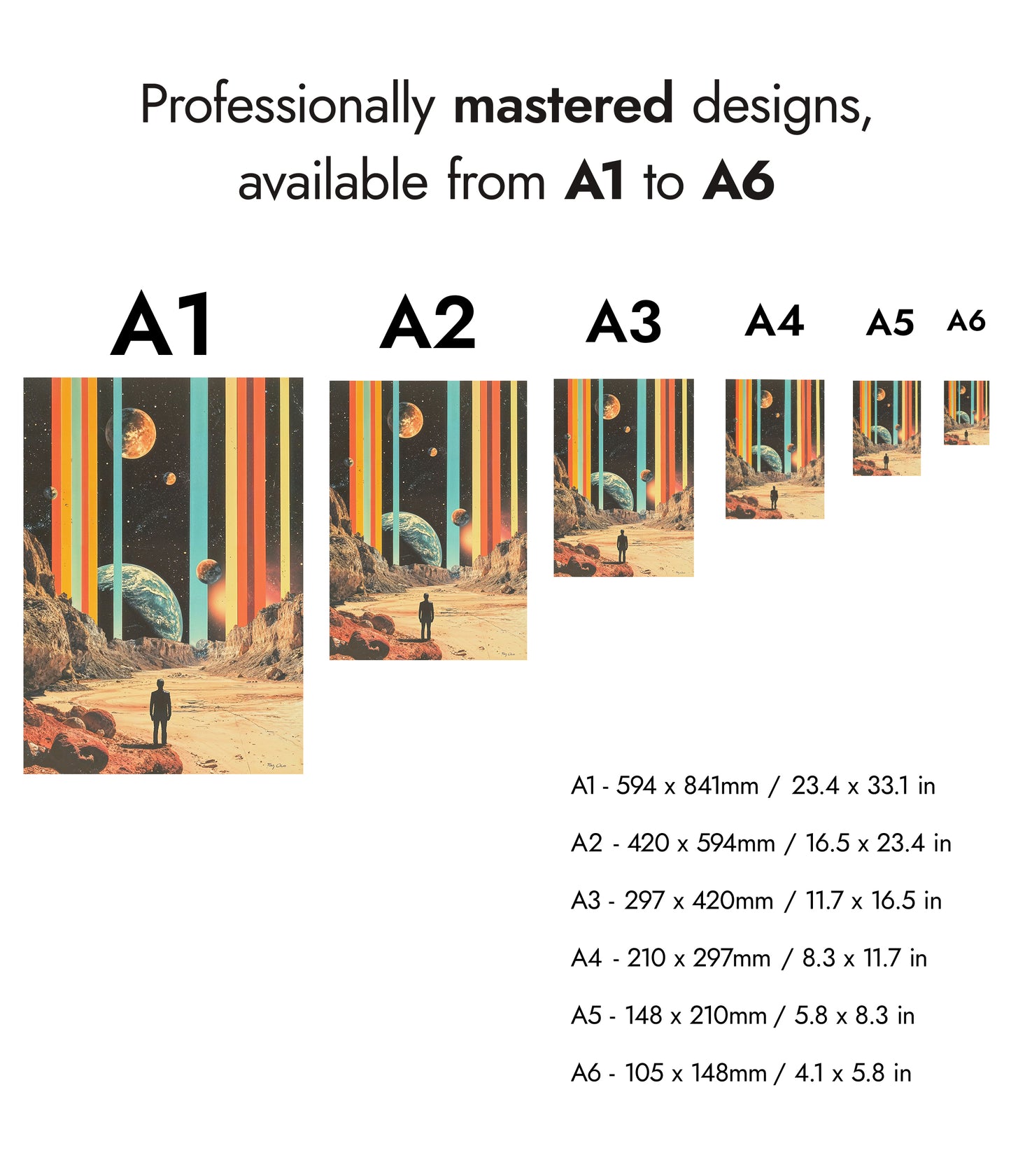 8 colour giclée print process on high-quality 230gsm archival matte paper. All our paper is FSC Certified and prints come with a lifetime fade-resistance guarantee.