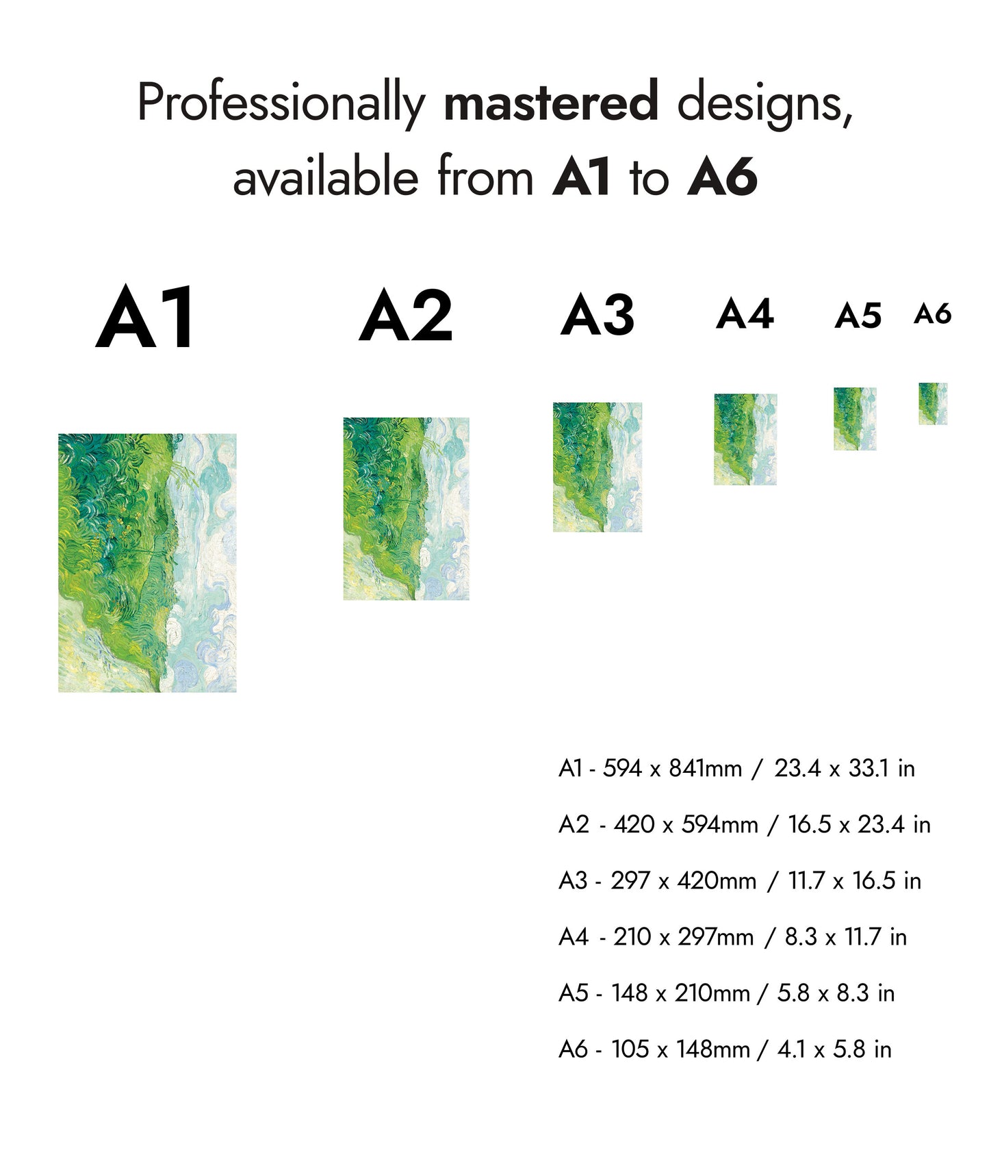 8 colour giclée print process on high-quality 230gsm archival matte paper. All our paper is FSC Certified and prints come with a lifetime fade-resistance guarantee.