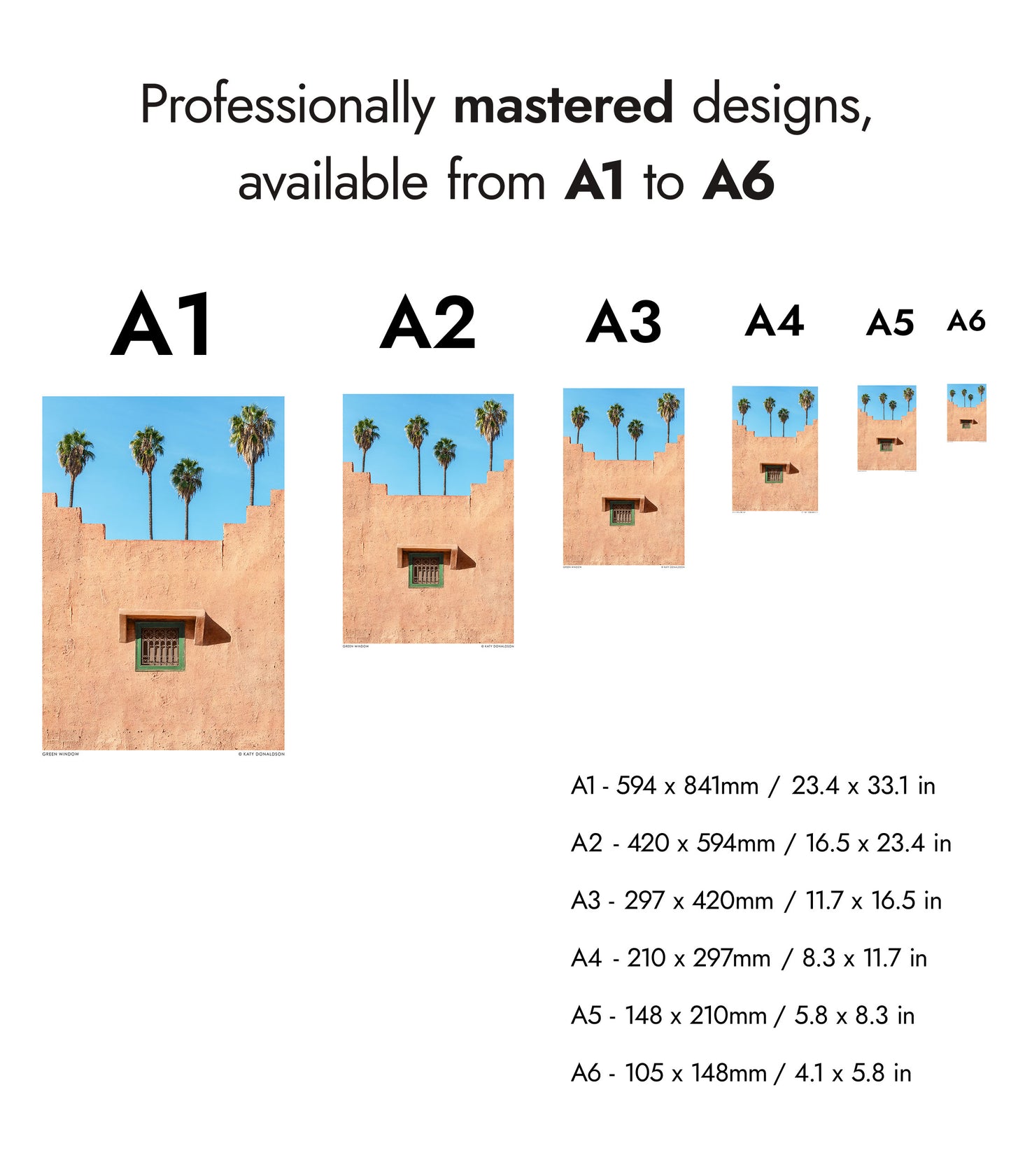 8 colour giclée print process on high-quality 230gsm archival matte paper. All our paper is FSC Certified and prints come with a lifetime fade-resistance guarantee.