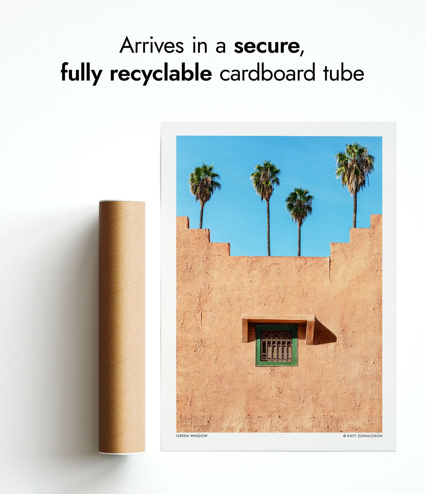 All orders are securely packed in recyclable, eco-friendly solutions. Frames are protected with sustainable bubble wrap alternatives inside thick boxes. Print only orders are shipped in heavy-duty cardboard tubes or protective hard-backed envelopes.