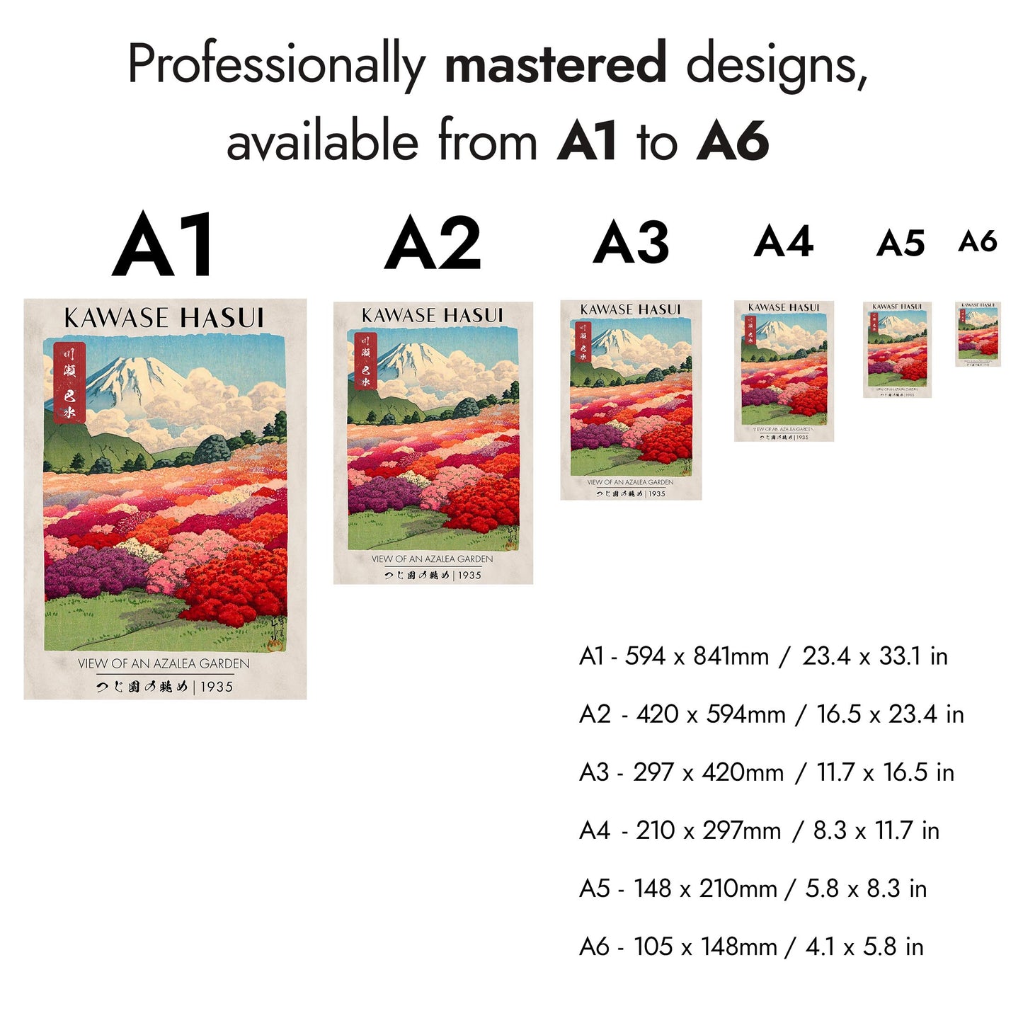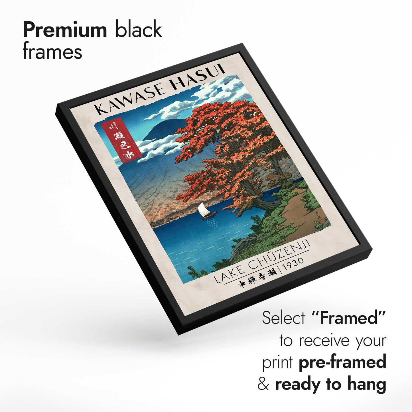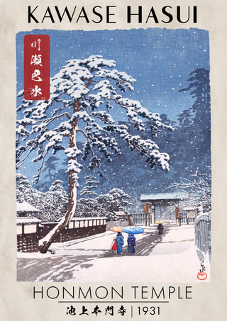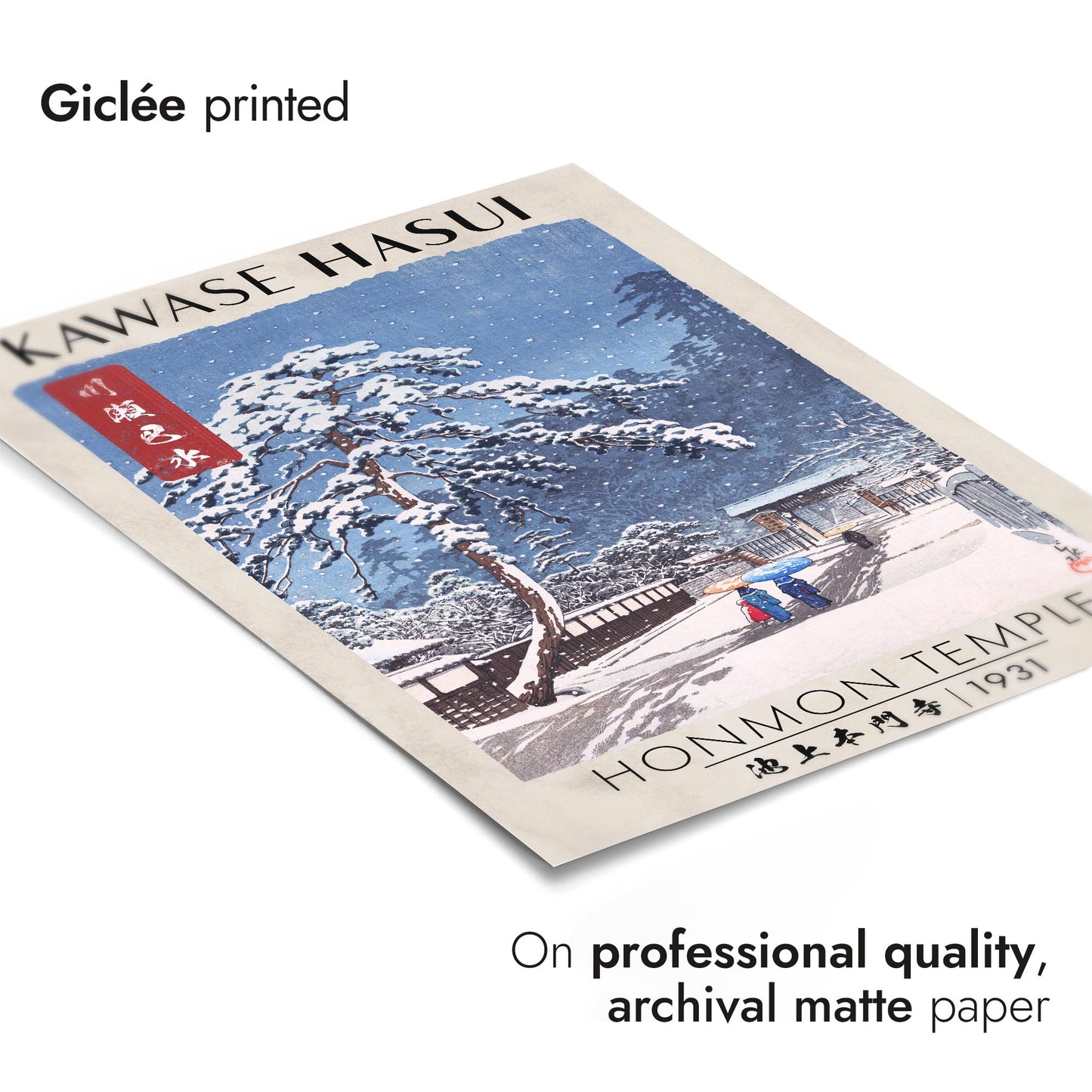 This vibrant poster set showcases Kawase Hasui's exquisite woodblock prints, capturing the essence of traditional Japanese landscapes across seasons. Featuring Honmon Temple adorned with winter snow, a serene Lake Chuzenji with autumn foliage, and a picturesque view of Mount Fuji in spring, each piece highlights Hasui's mastery of ukiyo-e, reflecting nature's beauty. Perfect for lovers of Japanese art and scenery.