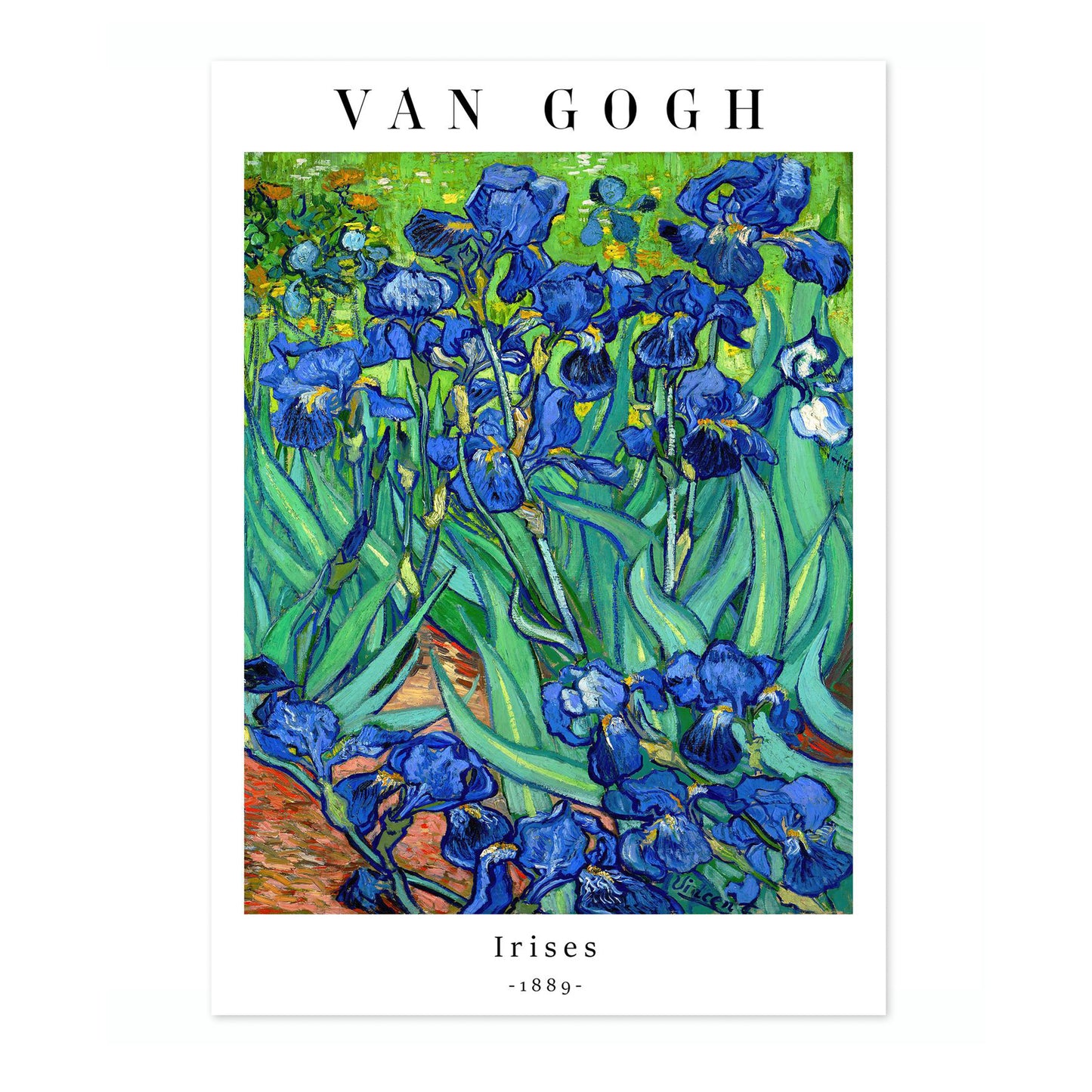 This vibrant Van Gogh Irises poster from 1889 beautifully captures the dynamic energy and vivid colors of Post-Impressionism. Featuring lush blues and purples with striking green foliage, the floral composition celebrates the intricate beauty of iris flowers in a summer garden. Perfect for art enthusiasts and nature lovers alike, this piece radiates the brilliance of Van Gogh's expressive brushwork.
