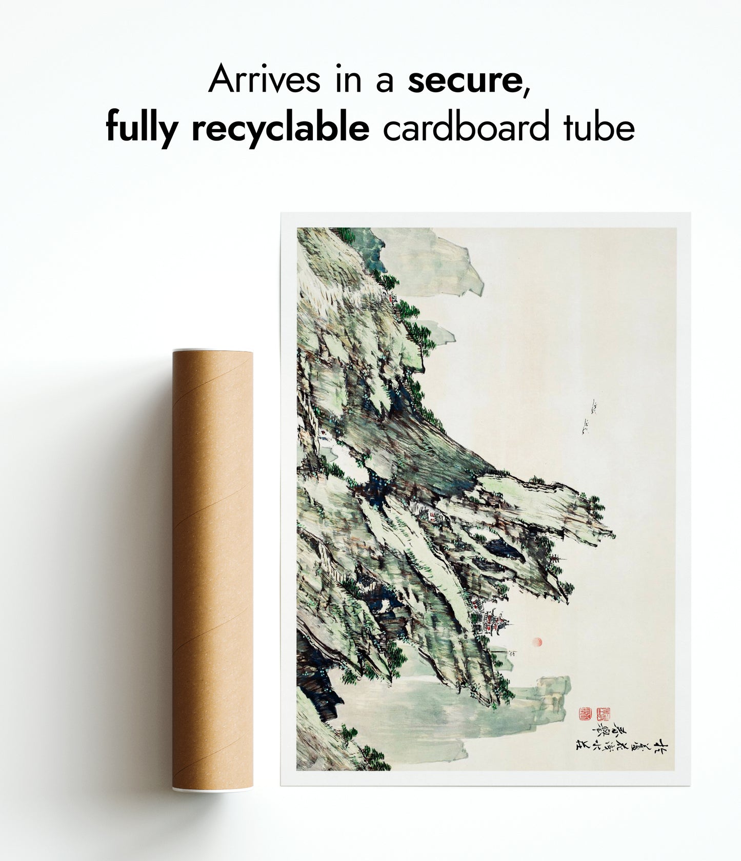 All orders are securely packed in recyclable, eco-friendly solutions. Frames are protected with sustainable bubble wrap alternatives inside thick boxes. Print only orders are shipped in heavy-duty cardboard tubes or protective hard-backed envelopes.