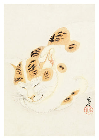 This Japanese Sleeping Cat poster by Kawanabe Kyosai captures a serene and intimate moment of a cat peacefully resting. The traditional Sumi-E painting style highlights delicate brushwork, emphasizing tranquility and natural beauty. Ideal for those who appreciate Japanese art and calming animal imagery, this portrait brings a touch of Zen to any space.